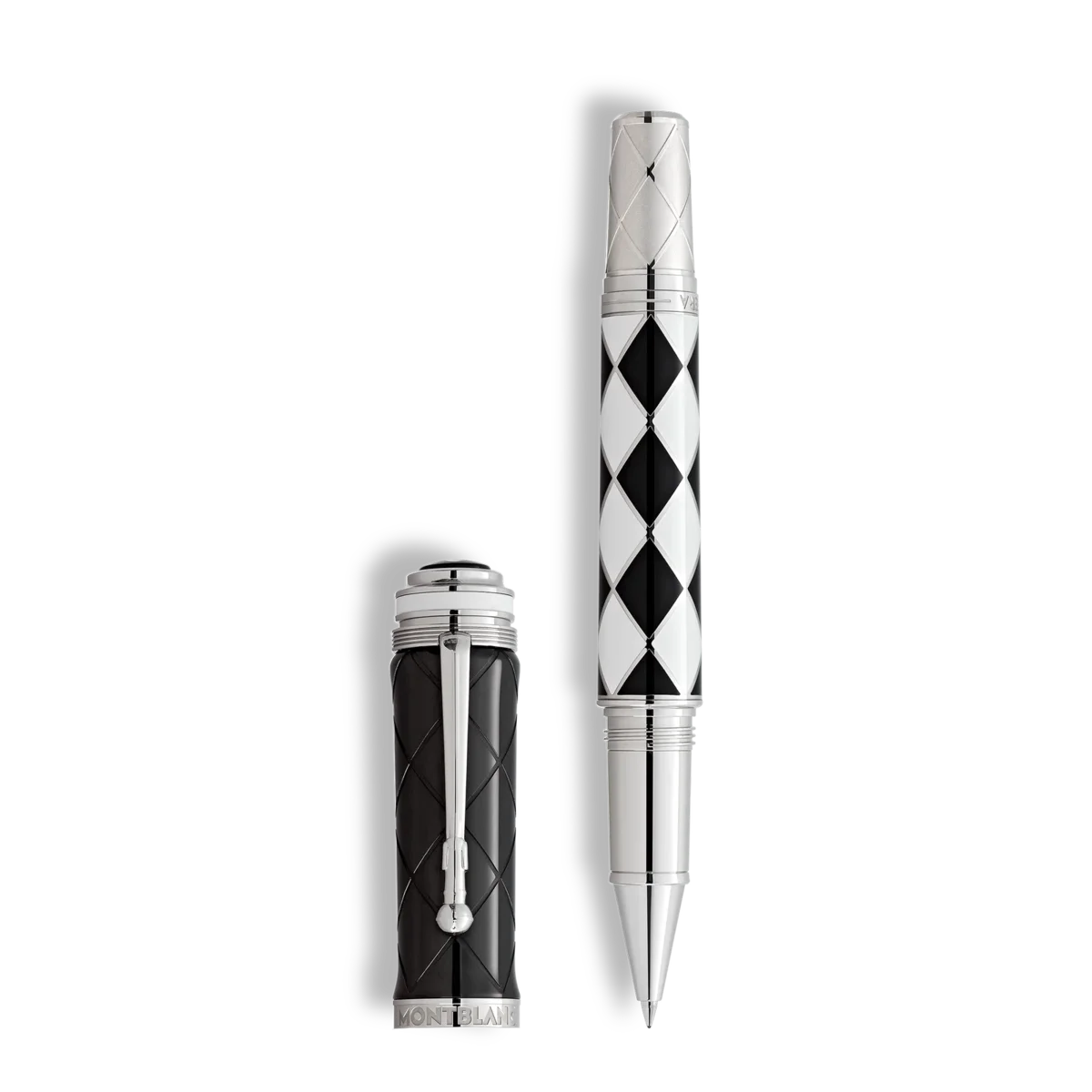 Dans la riche histoire du rock, peu de noms ont brillé aussi longtemps que celui de Queen. Avec une carrière s’étendant sur plus de cinq décennies, le groupe est l’un des plus célèbres de tous les temps. Au cours de cette période, Queen a incarné la puissance de la créativité musicale et la plupart de ses chansons ont dominé les classements pendant des semaines. Ils ont créé leur propre univers musical, composé d’un mélange de hard rock, de glam rock, de pop, de funk et d’opéra, brisant ainsi les frontières entre les genres. Montblanc dédie son édition limitée Great Characters Homage to Queen 1975 à ces icônes de la musique rock, inspirée de l’album A Night At The Opera. Noir et blanc. Aucune autre combinaison de couleurs ne décrit un contraste aussi marqué et aucune autre ne pourrait mieux symboliser l’étendue de l’univers musical de Queen. Pendant un certain temps, The Black and the White a même été envisagé comme titre de leur deuxième album studio et a été la devise de la spectaculaire fête d’anniversaire de Mercury onze ans plus tard. La Limited Edition 1975 apparaît également sous cette forme contrastée. Le quatrième album studio du groupe a toutefois surpassé tout ce qui avait été fait auparavant et est considéré comme l’album le plus élaboré du XXe siècle. Les quatre artistes qui y ont participé sont entrés dans l’histoire : Freddy Mercury, le charismatique leader au registre vocal couvrant plusieurs octaves et au vibrato riche ; Brian May, le guitariste virtuose au son de guitare électrique inimitable ; John Deacon, le bassiste très créatif ; et Roger Taylor, le cœur rythmique du groupe. En hommage à ces quatre musiciens exceptionnels, leurs portraits stylisés sont immortalisés sur le capuchon noir de l’instrument d’écriture, inspiré des pochettes emblématiques des albums Queen II et Hot Space. L’album A Night at the Opera, et en particulier son morceau phare Bohemian Rhapsody, illustre le rêve de Freddie Mercury de créer un disque aux proportions épiques. L’arrangement extravagant de six minutes du single combine des ballades au piano, de l’opéra et du rock, entrecoupés de couches successives de voix opératiques en cascade et de références excentriques à des personnages tels que Galilée ou Scaramouche, une figure de la Commedia dell’Arte. Mercury lui-même, connu pour ses costumes de scène flamboyants, se glissait souvent dans la peau d’un autre personnage de la Commedia dell’Arte, Arlequin. Son célèbre justaucorps moulant à motifs losanges noirs et blancs soulignait son personnage de scène non conventionnel et a inspiré le design rhombique du cylindre. Cette édition rend également hommage à Brian May et à son incroyable jeu de guitare, qui a joué un rôle si important dans le son de l’album, en donnant au cône recouvert de platine son aspect distinctif. Celui-ci rappelle les boutons de contrôle du volume et de la tonalité de la célèbre guitare électrique de May. Le nom de l’album, A Night at the Opera, est gravé sur l’anneau du cône. L’année de sa sortie, 1975, a inspiré la décision de limiter l’édition à 1975 stylos plume et 1975 stylos roller. La couronne portée par Mercury lors de l’interprétation finale de God Save The Queen a inspiré la silhouette du capuchon de l’édition limitée et est en même temps une métaphore du caractère majestueux du groupe et de son héritage musical. Le clip recouvert de platine est conçu pour ressembler à un pied de micro, en référence à l’un des éléments caractéristiques des performances live de Freddie Mercury. Numéro d’identification MB131969 Poids physique 90,11 g Dimensions 144,9 mm * 17,8 mm