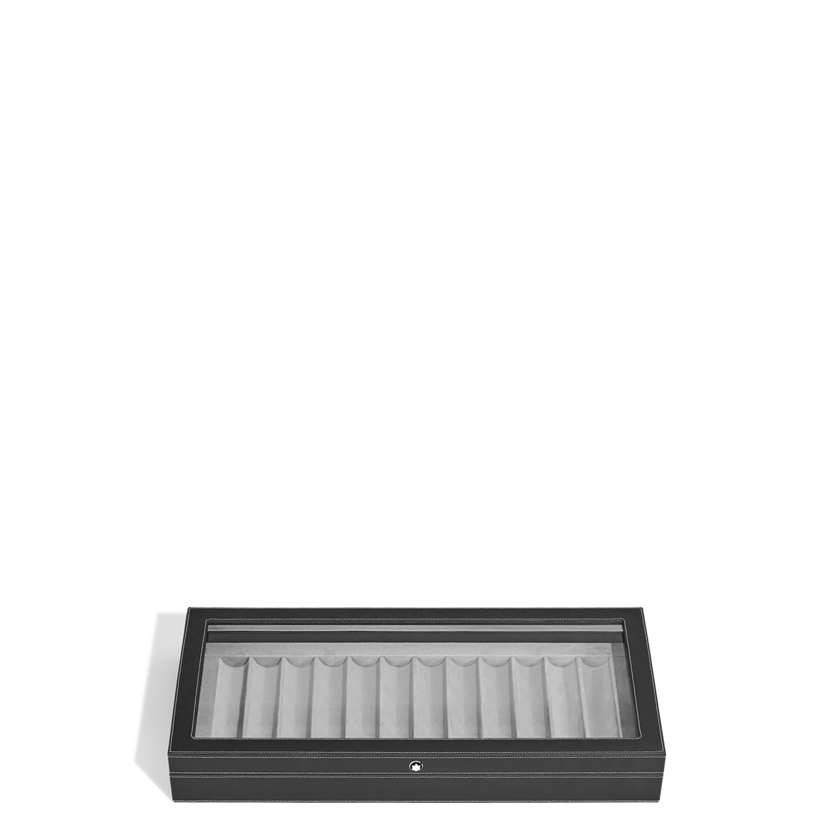 Coffret de collection Montblanc, en bois et laque noire avec doublure en daim beige. Il peut contenir jusqu’à 12 instruments d’écriture. Dimensions : 540 x 53 x 265 cm.