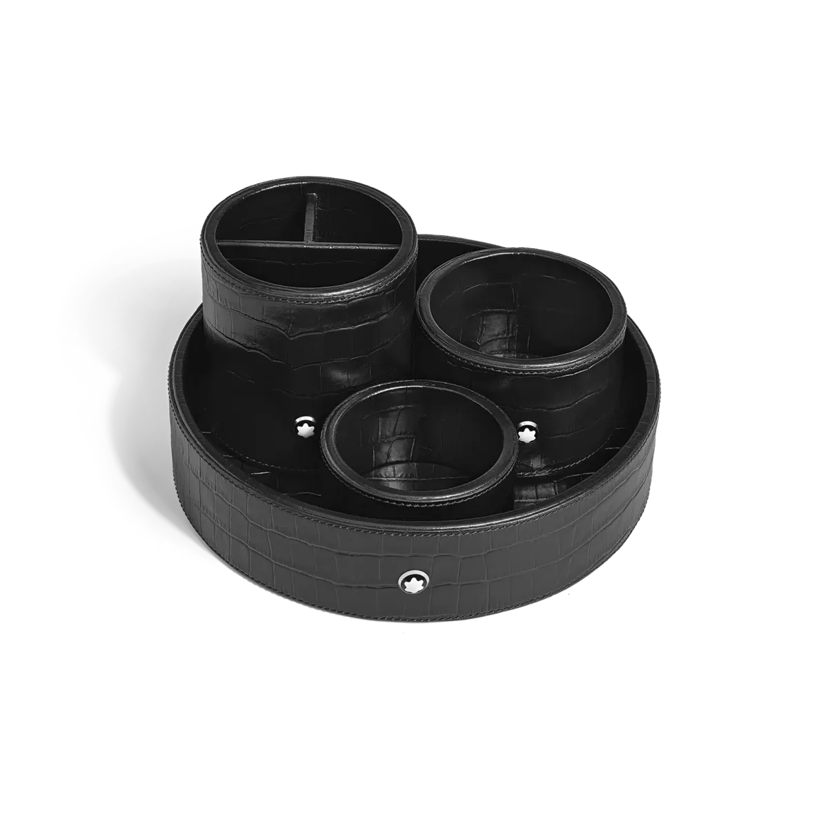 Découvrez tous les détails du grand plateau de bureau en cuir gaufré croco noir. Achetez en ligne sur la boutique officielle Montblanc.