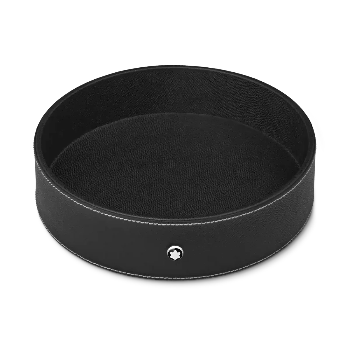 Découvrez tous les détails du plateau de bureau rond en cuir noir (grand format). Achetez en ligne sur la boutique officielle Montblanc.