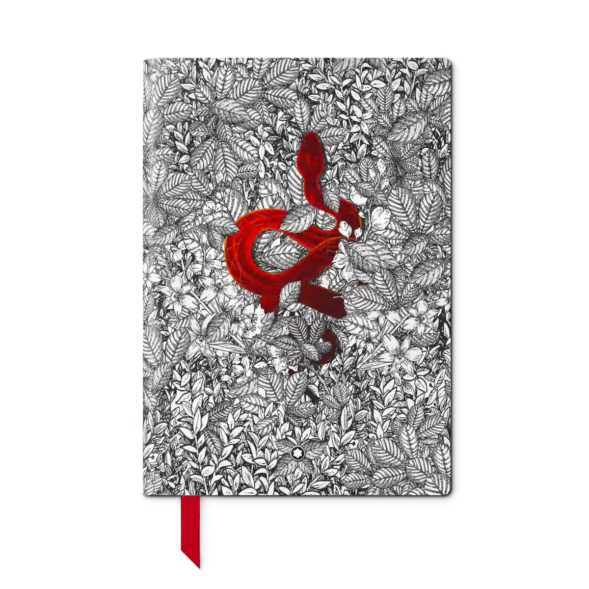 Carnet #146 petit format, The Legend of Zodiac, le Serpent, gris – ligné. Fabriqué en cuir souple avec imprimé serpent numérique et motif de feuilles sur l’ensemble du carnet. Fabriqué en Italie. 96 feuilles / 192 pages. Dimensions 150 x 210 mm.