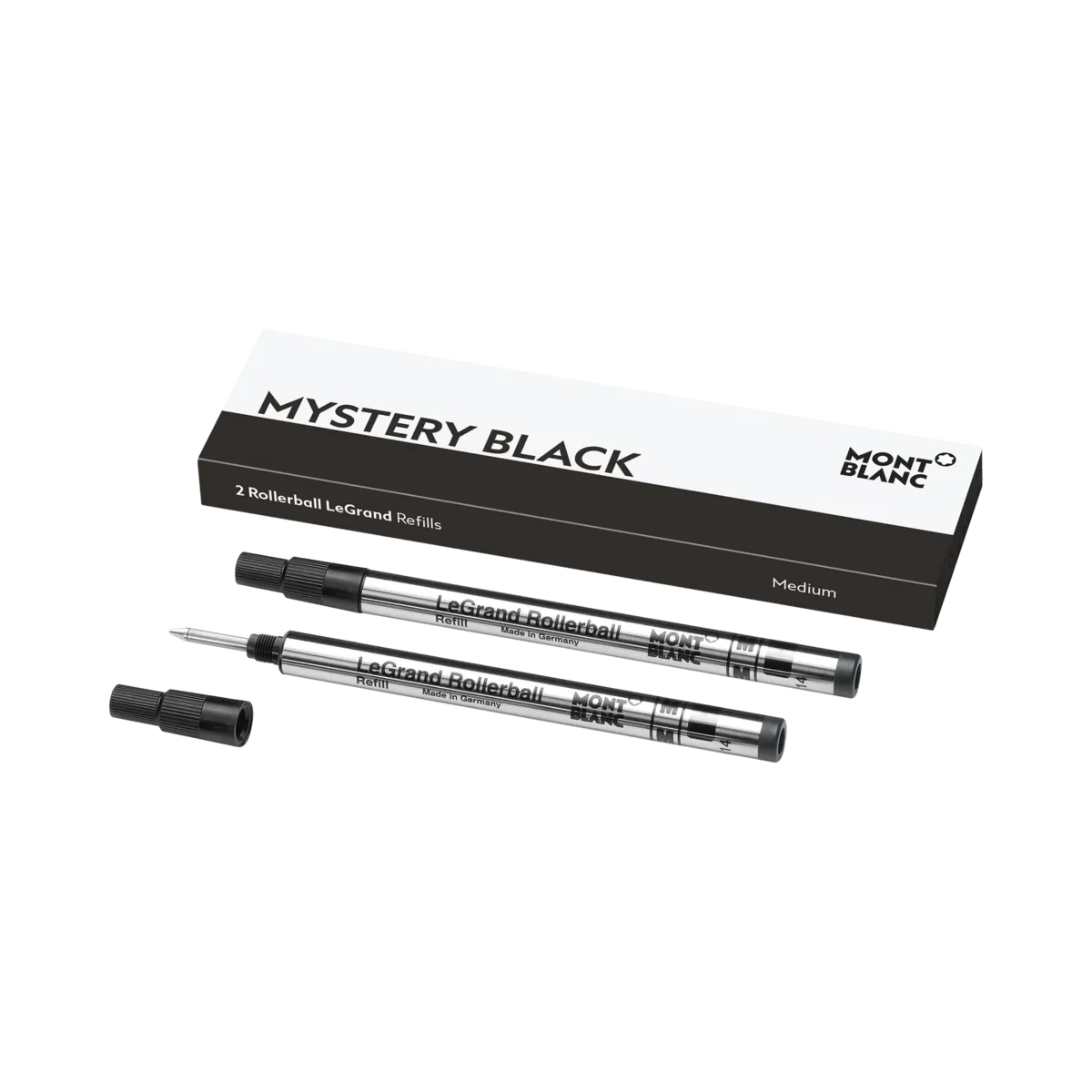 Découvrez tous les détails des 2 recharges Rollerball LeGrand, noir mystère – Fine. Achetez en ligne sur la boutique officielle Montblanc.
