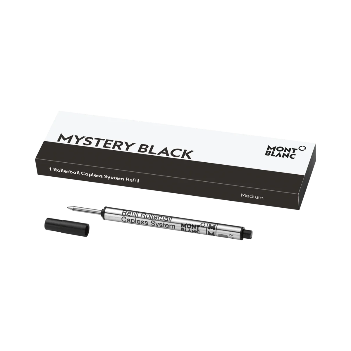 Recharge pour roller sans capuchon Montblanc, noir mystère. Compatible avec les stylos Heritage collection 1912 sans capuchon et les stylos roller Montblanc M. Unités d’emballage = 1 recharge. M = moyen