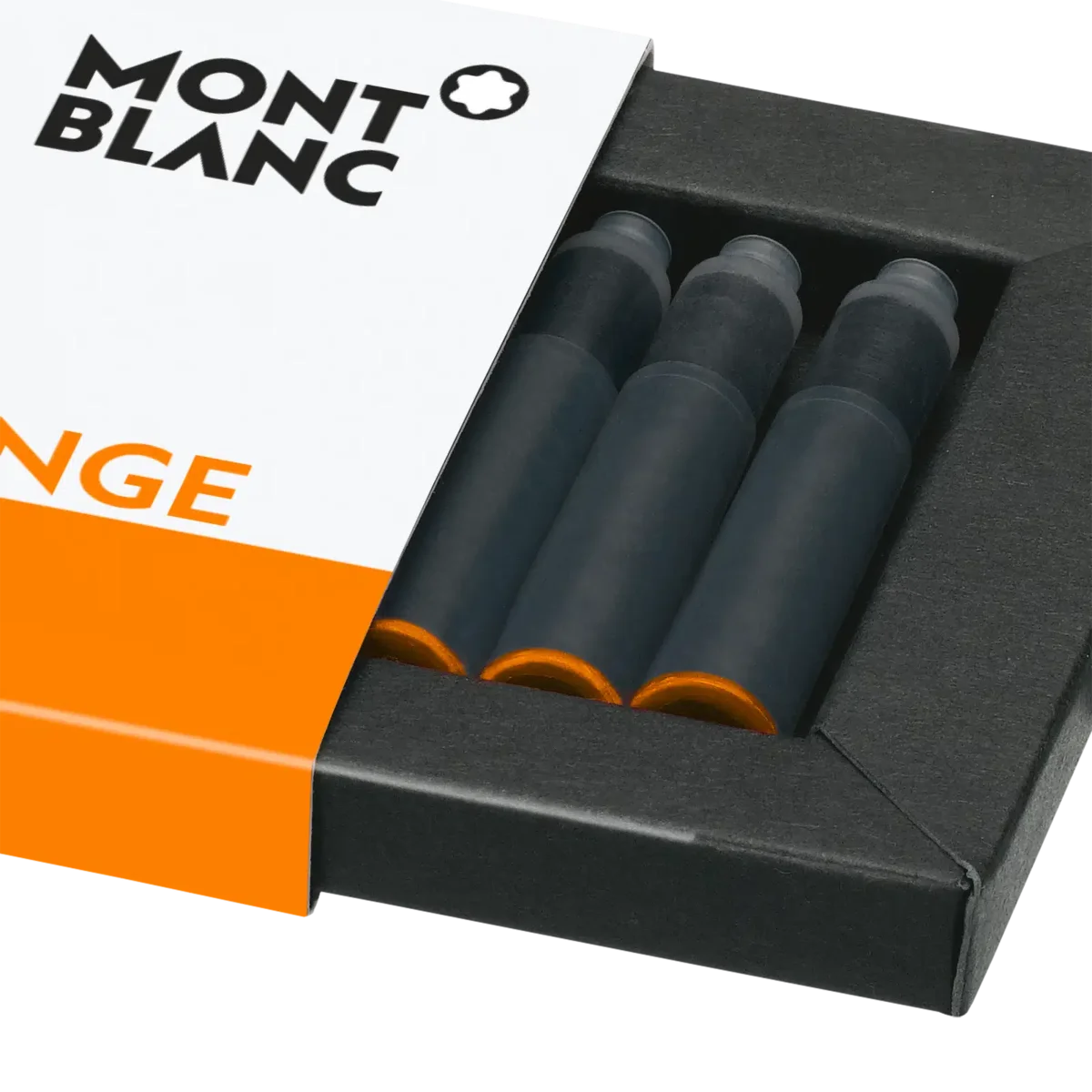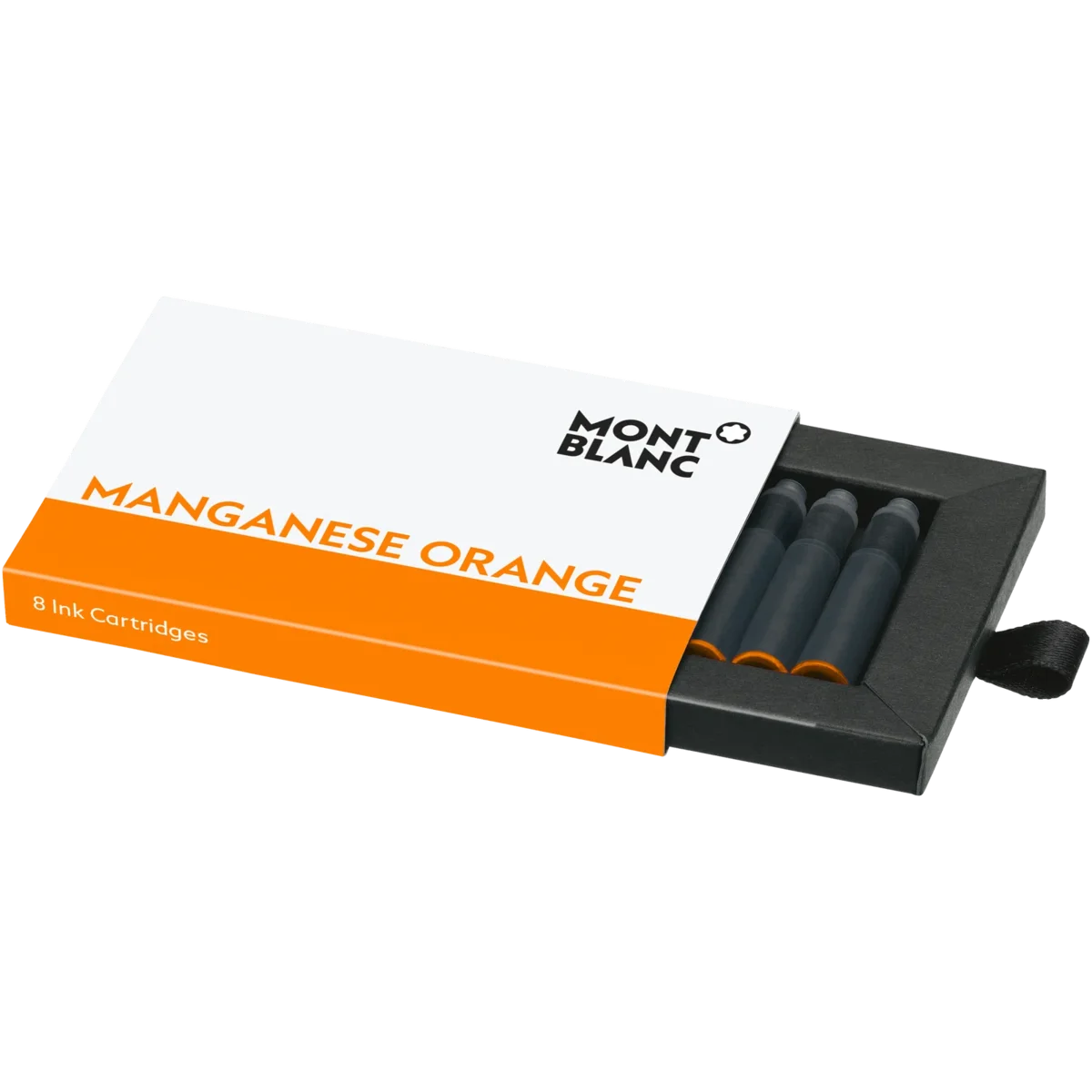 Cartouches d’encre Montblanc, orange manganèse. Compatibles avec tous les stylos plume Montblanc équipés d’un système à cartouche. Conditionnement : 8 cartouches.