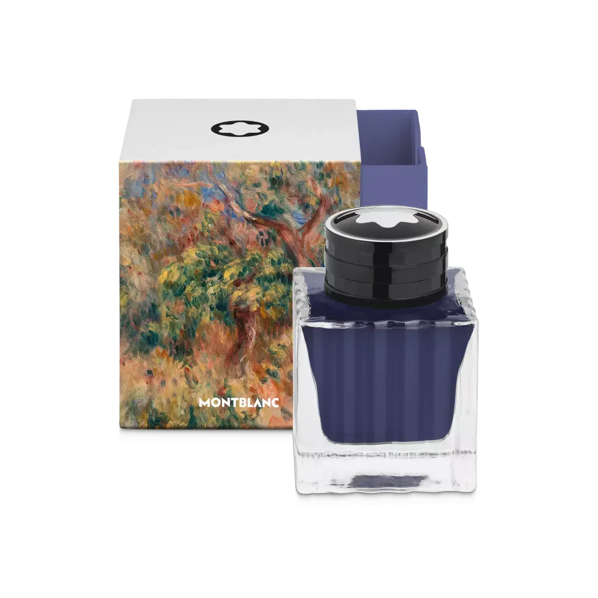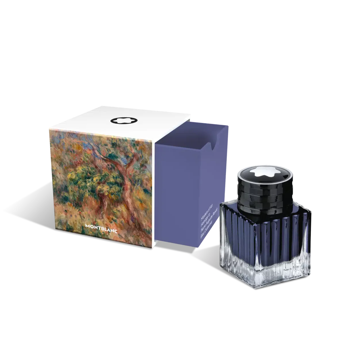 Flacon d’encre Montblanc, Masters of Art Hommage à Pierre-Auguste Renoir, Bleu outremer – 50 ml Les flacons d’encre Montblanc en édition spéciale sont présentés dans un emballage carré qui évoque les concepts et les thèmes de chaque collection, ce qui en fait des objets de collection précieux pour les amateurs de Montblanc.