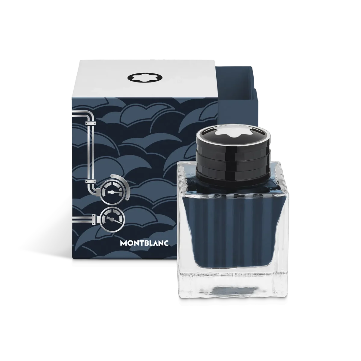 Flacon d’encre Montblanc, Meisterstück Around the World in 80 Days, bleu charbon – 50 ml Les flacons d’encre Montblanc en édition spéciale sont présentés dans un emballage carré qui évoque les concepts et les thèmes de chaque collection, ce qui en fait des cadeaux de collection précieux pour les amateurs de Montblanc. W362