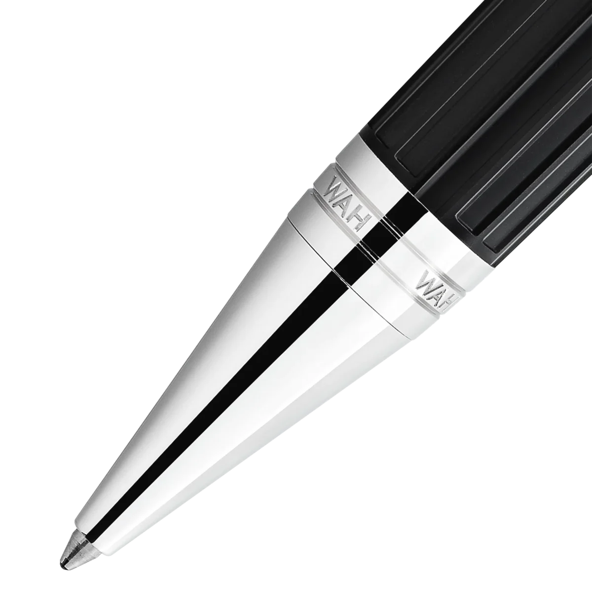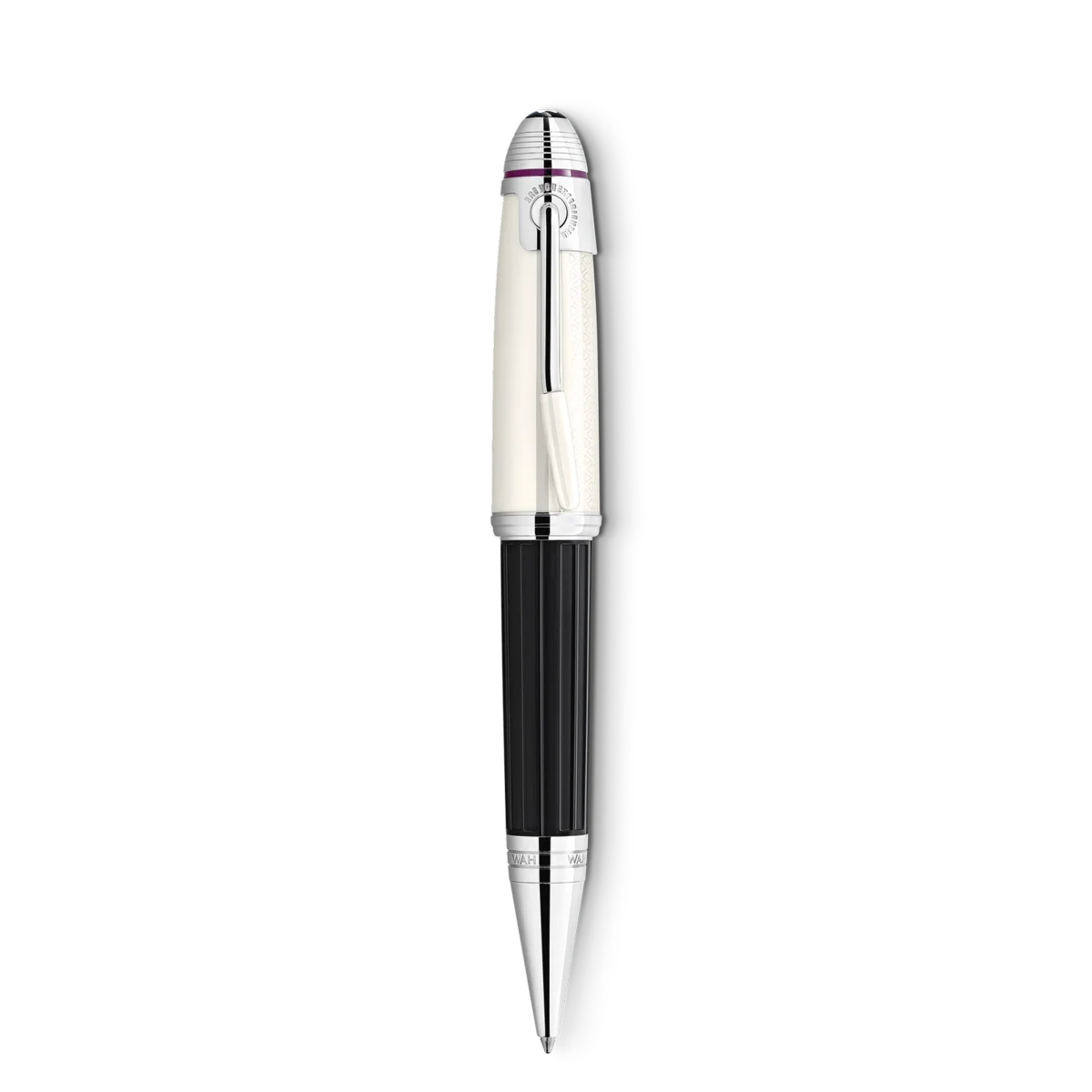 En 2022, Montblanc rend hommage à l’un des musiciens les plus célèbres du XXe siècle, largement considéré comme l’un des guitaristes électriques les plus influents de l’histoire de la musique populaire : Jimi Hendrix. Fabriqué en résine précieuse, le capuchon de couleur blanc cassé et son motif gravé s’inspirent d’une des sangles de guitare portées par Hendrix, tandis que le corps noir présente un motif élégant ressemblant à une pédale WAH. Le clip recouvert de platine est incliné pour ressembler à la barre de vibrato d’une guitare électrique. L’emblème Montblanc sur le capuchon est en résine précieuse. Numéro d’identification : MB128846 Poids physique : 57,62 g Dimensions : 143,1 mm * 16,9 mm