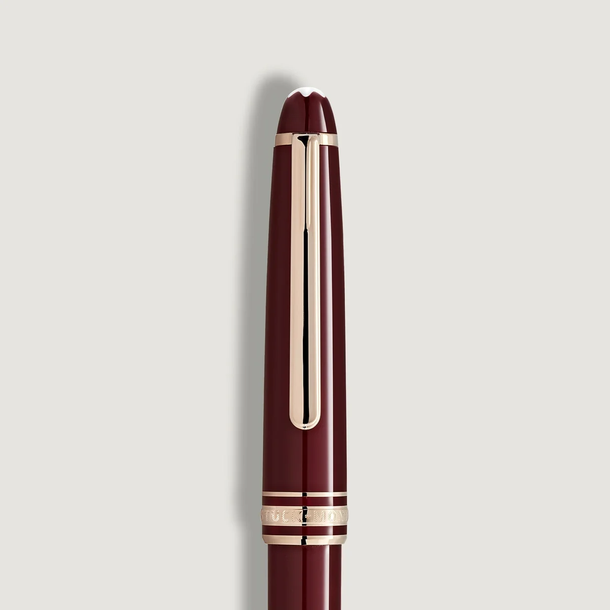 Le design intemporel du Montblanc Meisterstück Classique Burgundy Red fait écho à l’histoire de la Maison, le bordeaux étant une teinte prédominante depuis les années 1920. Cette couleur est depuis lors restée un élément incontournable de l’héritage de Montblanc. Le capuchon et le corps du stylo plume Meisterstück Burgundy Red sont fabriqués en résine précieuse rouge bordeaux avec des attributs en or signature, et arborent l’emblématique emblème blanc Montblanc incrusté dans le capuchon. Par « or signature », Montblanc décrit la nuance éclairée de l’or jaune qui est devenue une teinte appréciée pour les instruments d’écriture de la Maison.