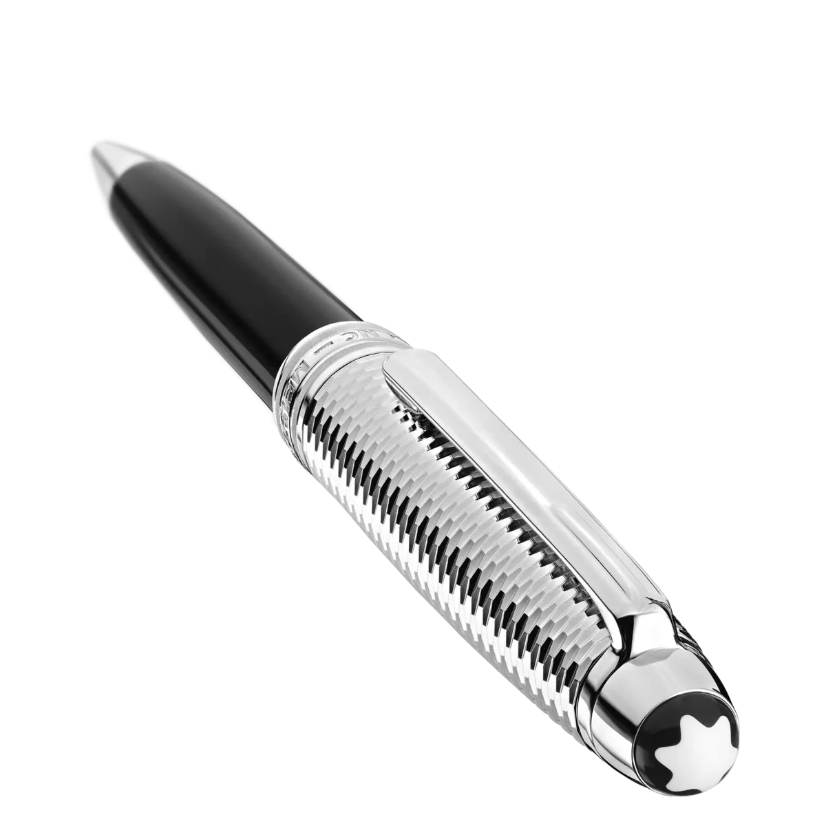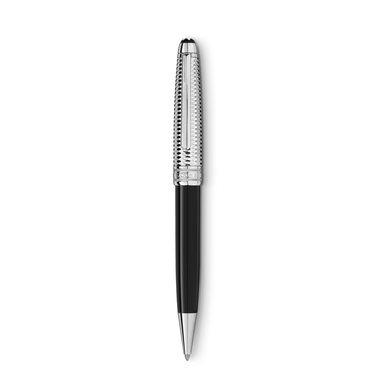 Le Meisterstück Solitaire Geometric Dimension est né de la volonté d’allier le design classique de Montblanc à des matériaux uniques. Cet instrument d’écriture en résine précieuse noire est gravé d’un motif géométrique tridimensionnel avec un effet optique dans un ton platine sophistiqué. Il est doté d’un clip plaqué platine et de trois anneaux plaqués platine sur lesquels est gravé le nom de la marque Montblanc. Orné de l’emblème Montblanc, il séduit par son caractère unique.