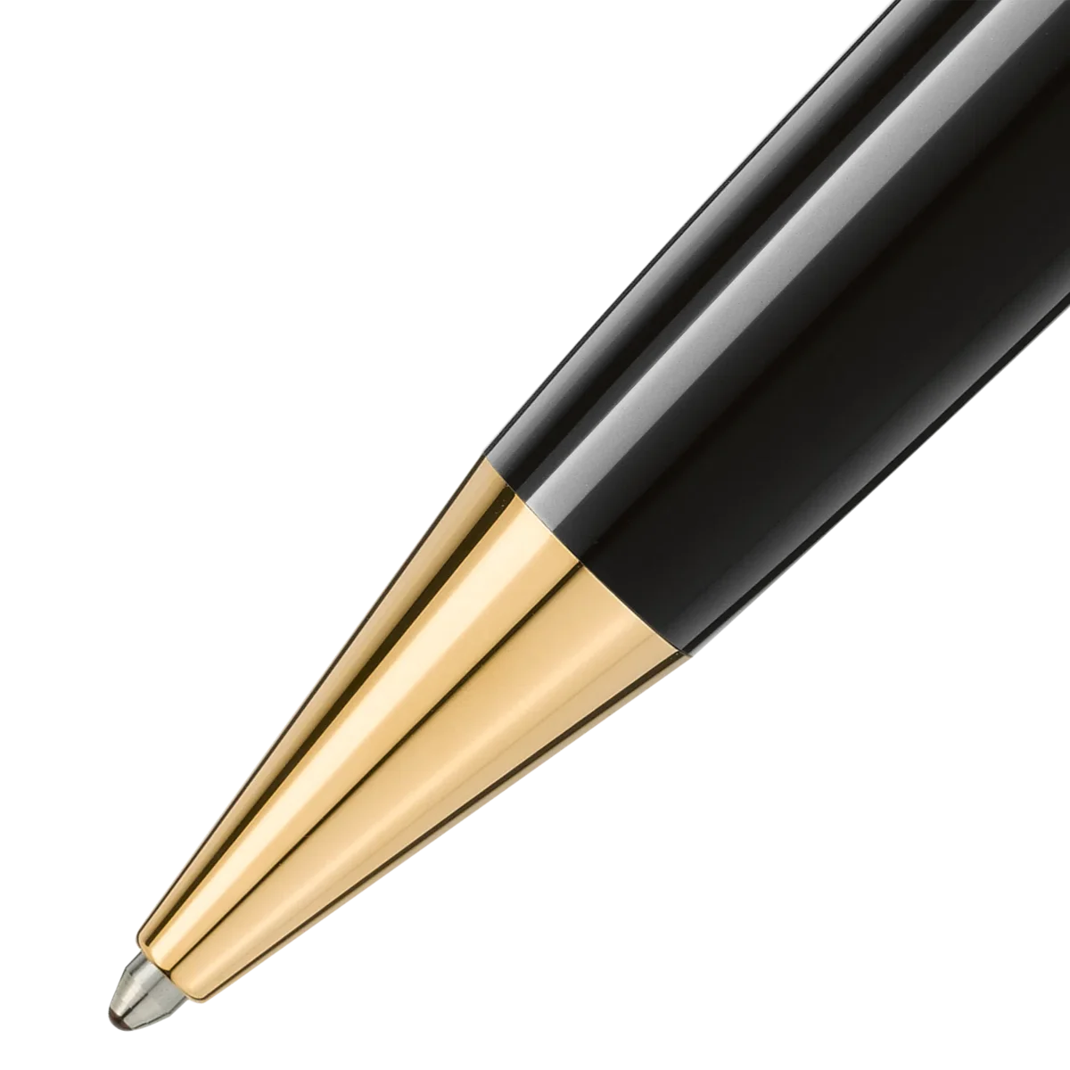 Le Meisterstück LeGrand, en résine précieuse noir profond avec des détails plaqués or et surmonté de l’emblème étoile blanche, devient l’icône du design Montblanc.