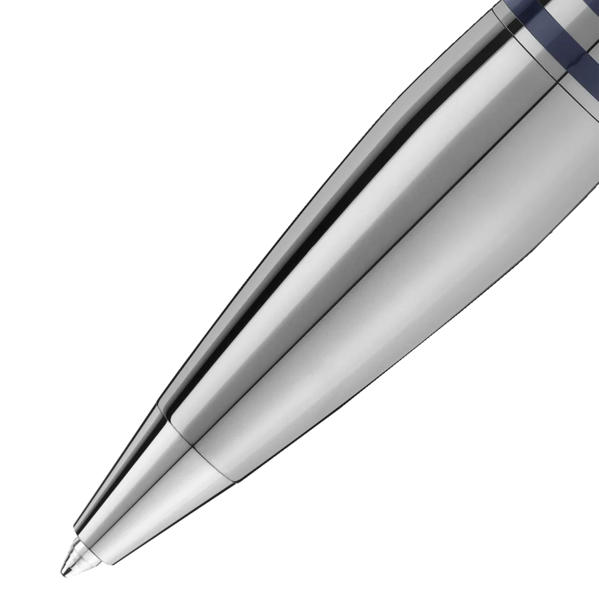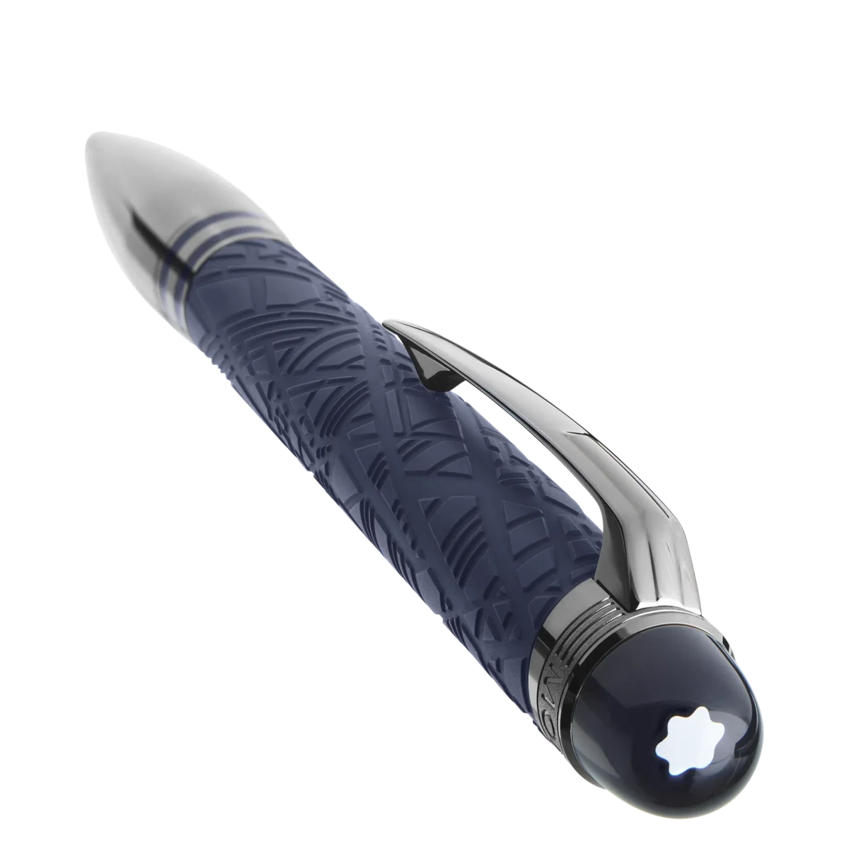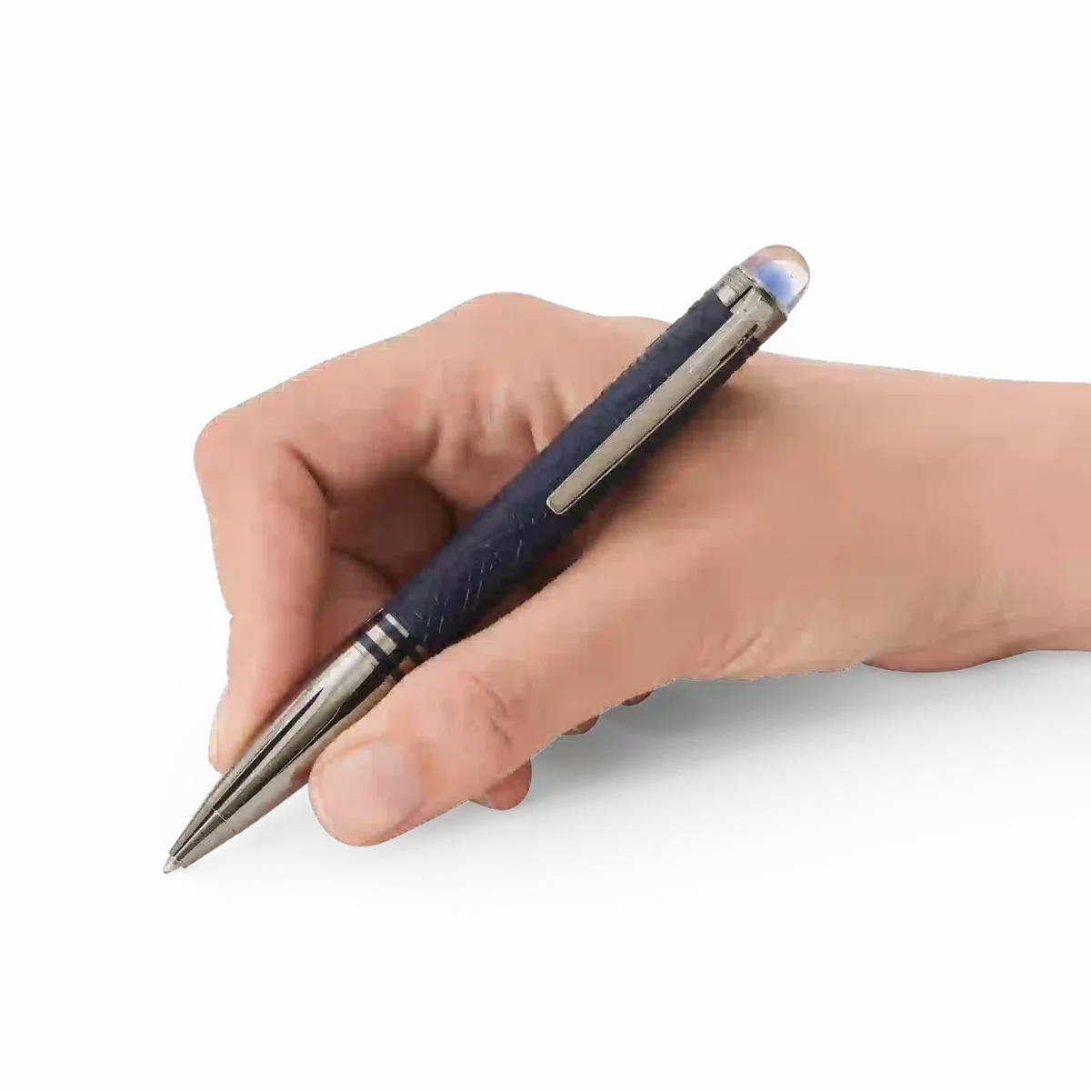 StarWalker SpaceBlue regarde au-delà de la planète Terre et se tourne vers les étoiles et la galaxie. Cette nouvelle collection StarWalker apporte un nouveau look au corps en résine, avec un design qui rappelle les structures complexes du motif Widmanstätten, l’une des créations les plus hypnotiques de la nature. La partie avant et les attributs métalliques sont recouverts de ruthénium foncé, accompagnés d’une teinte bleu espace profond pour la résine précieuse mate, rappelant les nuances d’un ciel étoilé. De plus, le sous-dôme sur le dessus du capuchon, sur lequel flotte l’emblème Montblanc, est de couleur bleu espace profond. Numéro d’identification MB130217 Poids physique 42,5 g Dimensions 134,5 mm * 13,1 mm