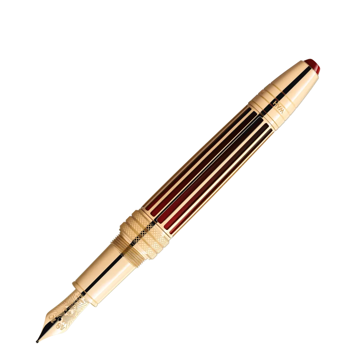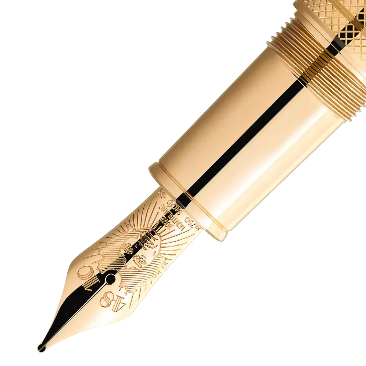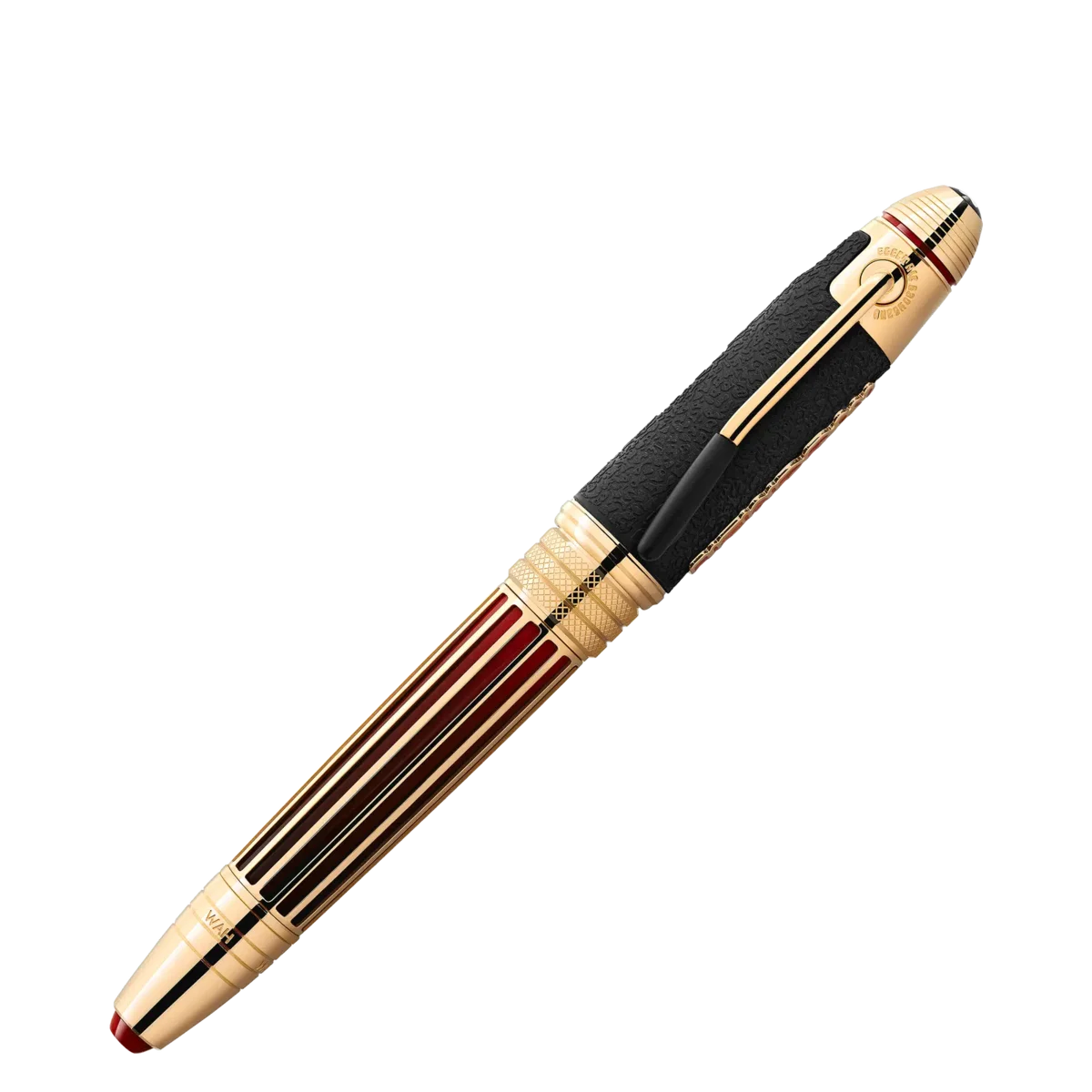 En 2022, Montblanc rend hommage à l’un des musiciens les plus célèbres du XXe siècle, largement considéré comme l’un des guitaristes électriques les plus influents de l’histoire de la musique populaire : Jimi Hendrix.Inspiré de la pochette de l’album « Electric Ladyland » sorti en 1968, le corps de ce stylo Limited Edition 1942 est recouvert d’une laque dégradée maintenue par une superposition squelettée. La surface du capuchon symbolise le matériau d’un amplificateur utilisé par Hendrix et arbore un badge en laque. Le clip plaqué or jaune est incliné pour ressembler à la barre de vibrato d’une guitare électrique. L’emblème Montblanc sur le capuchon est en résine précieuse. Un autre détail frappant est la bague du corps plaquée or jaune qui s’inspire d’un câble de guitare des années 1960 – elle est gravée de la date d’un célèbre concert de Jimi Hendrix. La plume en or massif 750 fabriquée à la main porte un portrait de Jimi Hendrix. Numéro d’identification : MB128844 Poids physique : 81,01 g Dimensions : 148 mm * 17 mm
