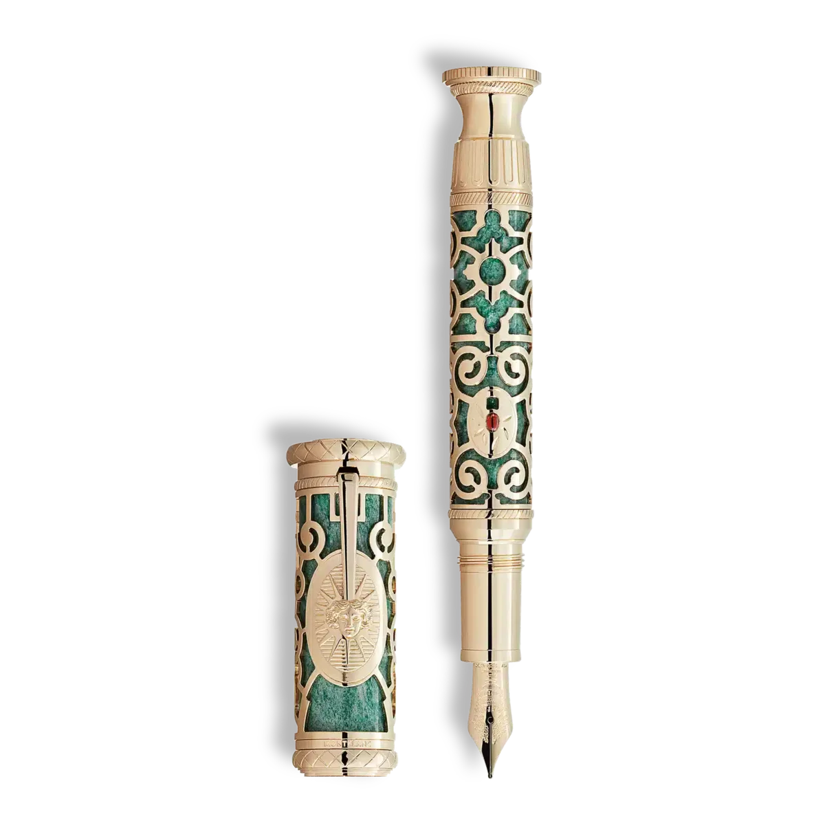 Il est presque impossible d’imaginer Versailles sans ses magnifiques jardins. Avec la collection « A Journey through Château de Versailles », Montblanc propose une visite guidée de ce chef-d’œuvre baroque afin de célébrer le site classé au patrimoine mondial de Versailles. L’édition limitée 195 rend particulièrement hommage aux jardins royaux et à l’orangerie, qui revêtait une importance capitale pour le roi. Ce n’est qu’en considérant le domaine dans son ensemble que l’ambition inébranlable du Roi Soleil apparaît clairement : créer une symbiose entre beauté et précision géométrique. Des architectes paysagistes de renom ont été chargés de concevoir et de construire un jardin qui éclipserait tous les autres. Ce qui était autrefois un marécage a été transformé en un spectacle parfaitement orchestré de jeux d’eau et de bosquets, de parterres de fleurs ornementaux, de fontaines élaborées, de jets d’eau, de sculptures en marbre et de vases richement décorés. Le roi prenait un immense plaisir à se promener dans son jardin, et il y avait une partie qu’il affectionnait particulièrement : l’orangerie. Sa grande passion pour les parfums, en particulier celui de la fleur d’oranger, l’a conduit à rassembler la plupart des orangers des maisons royales et à en acquérir un grand nombre de nouveaux en Italie, en Espagne et au Portugal. À l’abri du froid hivernal, les arbres prospéraient dans l’immense orangerie, l’une des raisons pour lesquelles la cour française était alors connue dans toute l’Europe comme « la cour parfumée ». Empruntant son motif et ses couleurs aux jardins royaux symétriques, le design de cette édition combine une superposition élaborée en or massif 750 signature avec une aventurine verte scintillante en dessous. La pièce maîtresse du corps, un cabochon en grenat, est entourée d’une délicate gravure florale. Une touche de l’orangerie est apportée à cette édition non seulement par le motif du cône, inspiré des vases de l’orangerie, mais aussi par le relief de la plume en or massif 750 fabriquée à la main. Elle représente l’un des pots de fleurs historiques qui bordaient les parterres pendant les mois d’été et mettaient en valeur les précieux agrumes du roi. En l’honneur du « Roi Soleil », comme le monarque a été surnommé par la suite, l’image du soleil est présente dans tout le palais sous de nombreuses représentations et allusions allégoriques au dieu grec antique. Le soleil occupe également une place centrale dans l’édition limitée 479. Véritable chef-d’œuvre d’artisanat, l’agrafe se termine par une représentation élaborée de la tête d’Apollon entourée des rayons du soleil et sertie dans une plaque en or massif 750. Le capuchon est couronné de l’emblème Montblanc en nacre brillante, incrusté dans de l’or massif 750. Le secret étant un élément central du pouvoir à la cour, le Roi Soleil utilisait des systèmes de cryptage spéciaux à base de lettres et de chiffres, connus sous les noms de « Grand Chiffre » et « Petit Chiffre ». Ceux-ci préservaient la confidentialité de ses communications militaires et diplomatiques tout en créant une aura d’exclusivité et de mystère. Selon ce système, le chiffre 195 correspondait au mot « honneur », un principe fondamental à la cour en raison de son association avec le prestige, le statut social et la faveur du roi. La grande importance de ce terme a inspiré la limitation de l’édition à exactement 195 pièces. Numéro d’identification MB132053 Poids physique 116,8 g Dimensions 144,2 mm * 22 mm * 22 mm