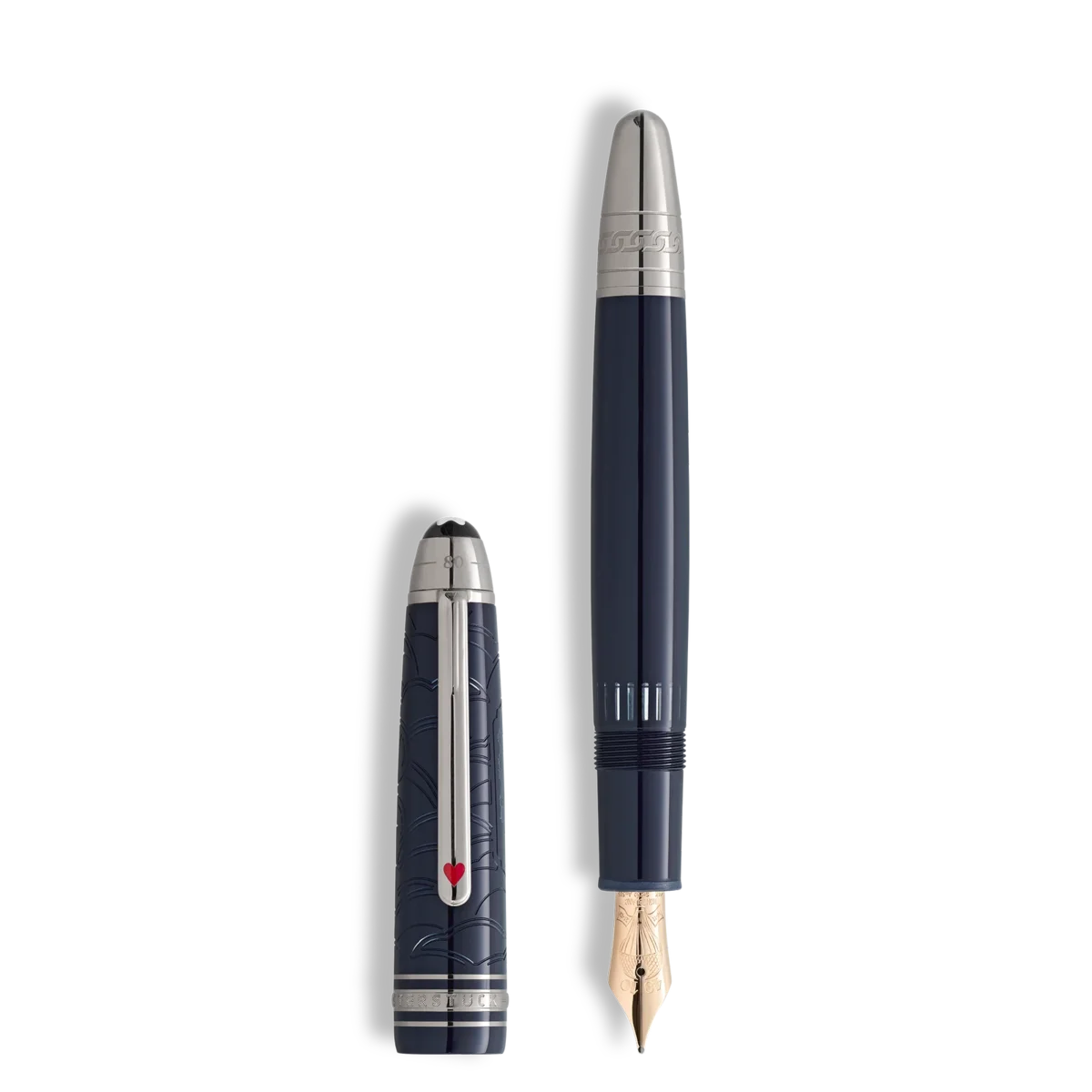 La collection Meisterstück Around the World in 80 Days s’inspire du célèbre roman d’aventures de Jules Verne. Le stylo plume LeGrand, orné de résine précieuse bleu foncé, retrace le voyage épique de M. Fogg et Passepartout. Embarquant pour la dernière étape de leur périple, de Yokohama à Londres en passant par les États-Unis, le duo traverse le vaste continent américain en train. Plongez-vous dans les détails complexes : un train élégamment gravé au laser sur le capuchon, un motif de chaîne de sécurité sur le cône, reflétant un moment crucial où Passepartout détache le train de la locomotive pour sauver l’équipage attaqué par les Sioux.Le design de la casquette représente les soupapes de pression et la fumée tourbillonnante de la locomotive, tandis que l’attache arbore un cœur rouge laqué, symbolisant l’union entre Phileas Fogg et la princesse Aouda. De plus, les couleurs des cartes représentent le pari audacieux de Fogg de terminer le voyage en seulement 80 jours. Le haut du capuchon porte en relief le calendrier du voyage : 36 jours de Yokohama à Londres, pour un total de 80 jours autour du monde.Cet instrument d’écriture est rehaussé d’une plume en or 14 carats fabriquée à la main et marquée 14/11 et 21/12, en référence au départ de M. Fogg de Yokohama le 14 novembre et à son ambitieux projet de revenir au club de Londres avant le 21 décembre pour remporter son pari. Il est également orné d’une représentation d’une montgolfière, en référence au premier roman d’aventure de Jules Verne. Numéro d’identification MB132874 Poids physique 29,891 g Dimensions 146,1 mm * 17,8 mm