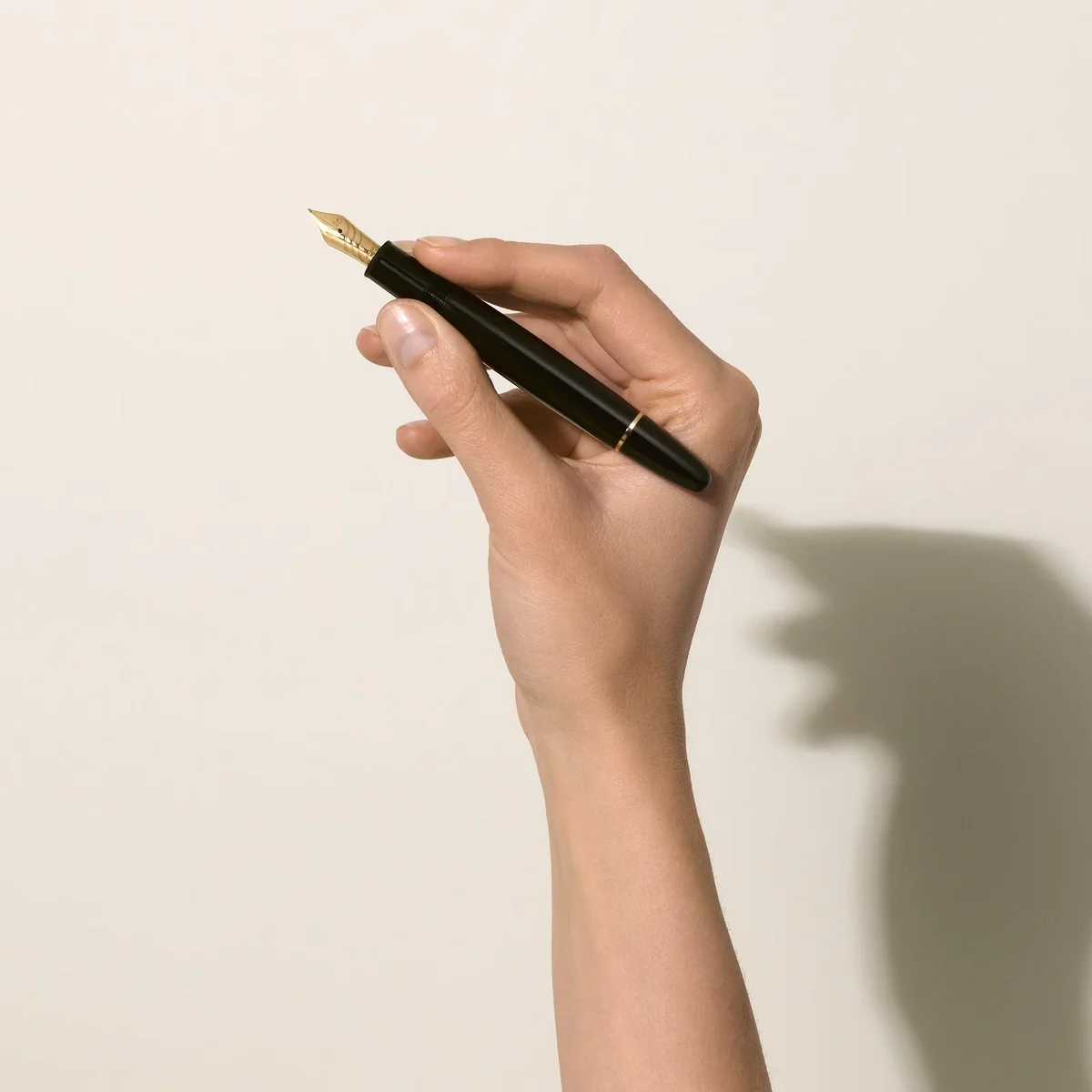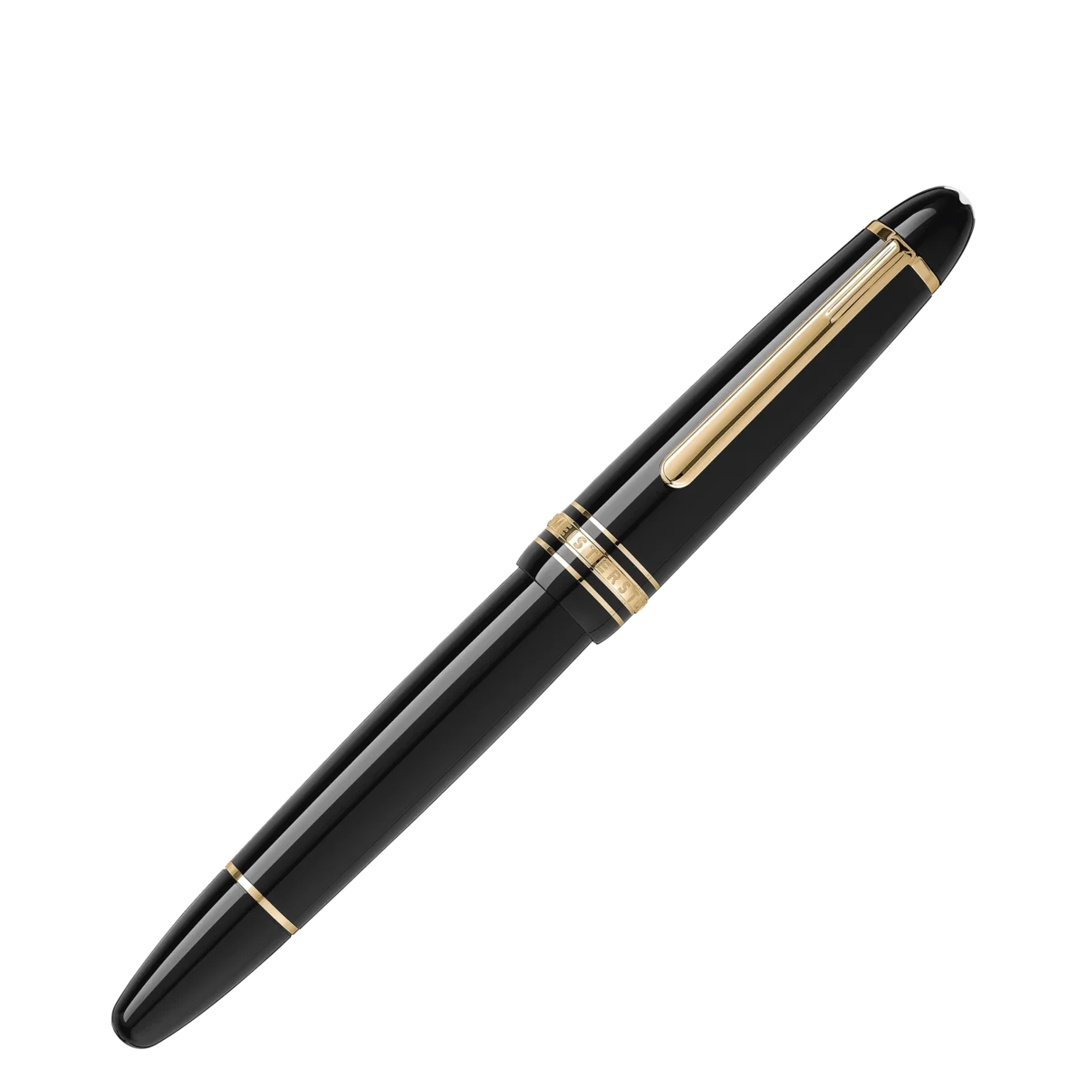 Le capuchon et le corps sont fabriqués en résine précieuse noire et arborent l’emblème blanc emblématique de Montblanc incrusté dans le capuchon. Le stylo plume est orné d’une plume incurvée innovante, fabriquée à la main en or massif Au750 et décorée de trois délicates lignes parallèles, un symbole inspiré des mouvements de la calligraphie. La plume incurvée permet une grande variété de styles d’écriture et de largeurs de trait, en fonction de l’angle et de l’orientation du stylo.