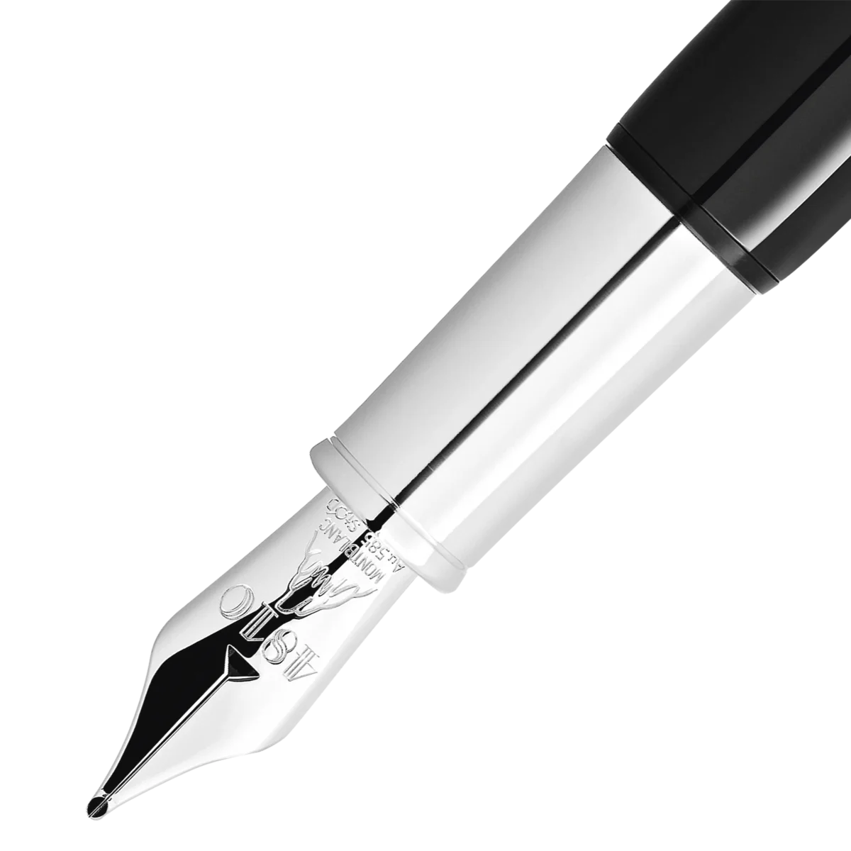 La collection Montblanc Heritage Rouge et Noir « Baby » célèbre l’esprit pionnier et le riche héritage de la maison Montblanc. Inspirée des stylos Montblanc « Baby » originaux des années 1920, Montblanc réinterprète le design alors inattendu et lui donne une touche moderne. Le nom « Baby » décrit de manière ludique sa petite taille par rapport aux autres instruments d’écriture Montblanc. Créé en laque précieuse noire et doté d’accessoires plaqués platine, il est couronné d’un emblème Montblanc en résine précieuse entouré de la teinte corail emblématique de la collection Montblanc Rouge et Noir.La plume en or massif Au 585 fabriquée à la main est ornée d’un dessin représentant le mont Blanc. Numéro d’identification : MB127801 Poids physique : 30,92 g Dimensions : 99 mm * 11,8 mm