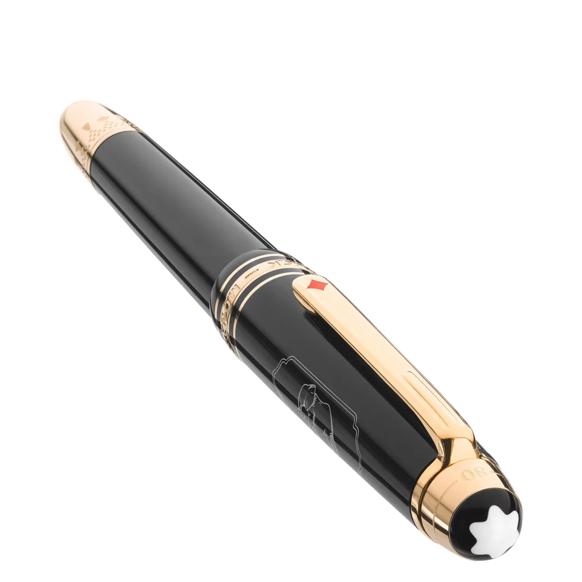 La collection Meisterstück Around the World in 80 Days s’inspire du célèbre roman d’aventures de Jules Verne. Le stylo plume Classique en résine précieuse anthracite s’inspire de la deuxième étape du voyage, de Bombay à Yokohama. Dans cette partie de l’aventure, les personnages principaux voyagent à dos d’un éléphant majestueux, représenté dans un cartouche sur le capuchon. Le clip est orné d’un atout de carreau laqué rouge, symbole des jeux de hasard et des cartes à jouer, et le cône est gravé d’un motif inspiré des bijoux de la princesse Aouda et des atouts de cartes. Le sommet du capuchon est estampé de la durée du voyage, 25 jours de Bombay à Yokohama et 80 jours au total. L’instrument d’écriture est doté d’une plume en or 18 carats fabriquée à la main et ornée d’une montgolfière avec les inscriptions 20/10 et 14/11 : M. Fogg quitte Bombay à 20 h le 20 octobre et Yokohama à 18 h le 14 novembre.