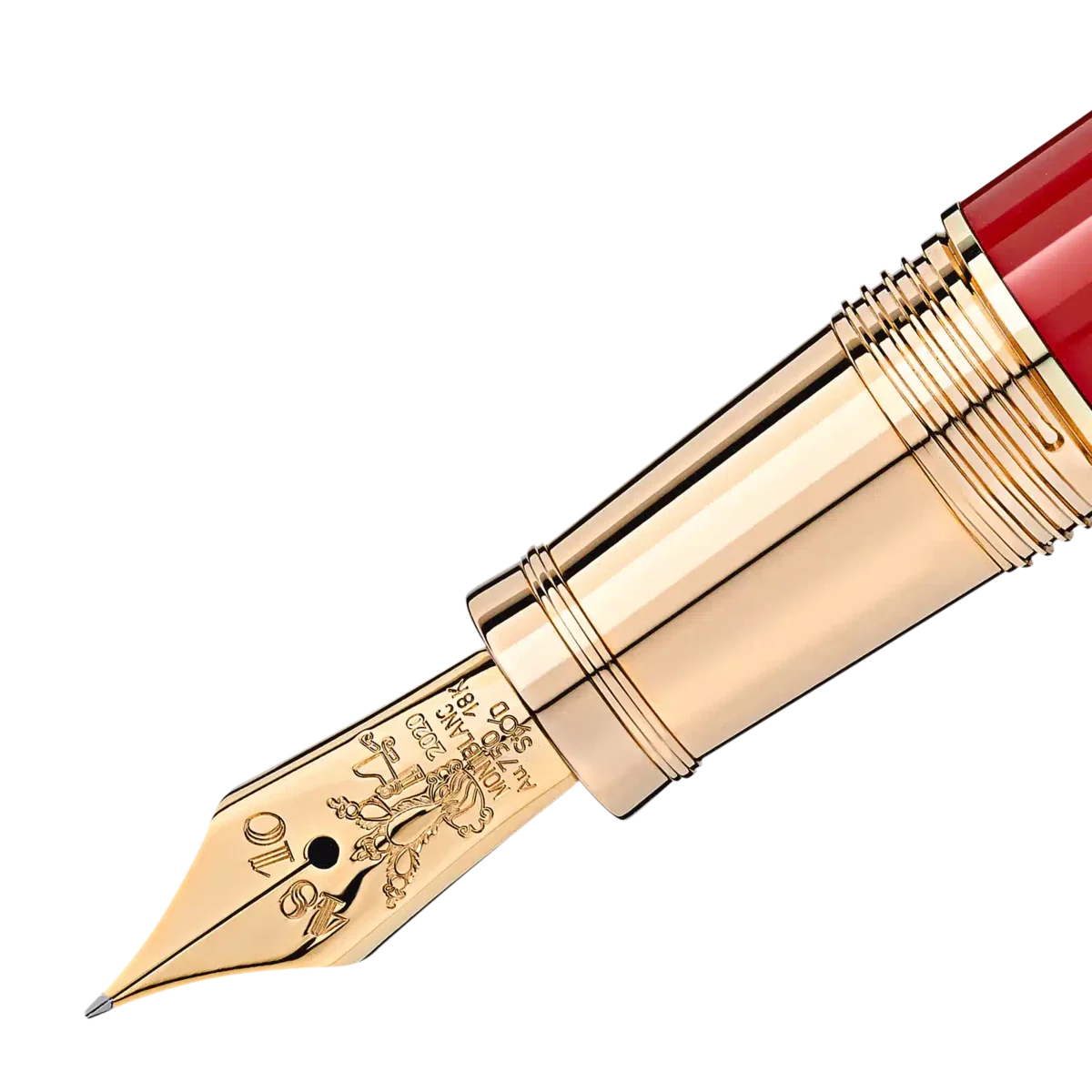 Moctezuma Ier fut couronné souverain du grand empire aztèque en 1440, inaugurant ainsi l’âge d’or des Aztèques. Au cours de son règne, il façonna l’image de l’État aztèque que nous connaissons aujourd’hui, un État riche en culture et en mythologie. La capitale Tenochtitlán, aujourd’hui Mexico, s’épanouit sous son règne. Le Montblanc Patron of Art Homage to Moctezuma I Limited Edition 4810, avec ses attributs plaqués or, est dédié à ce souverain suprême de l’une des cultures les plus particulières de l’histoire mondiale. Le design général s’inspire d’un atlatl, un lance-javelot aztèque. La forme du cône, raffinée par une finition martelée, s’inspire d’un couteau sacrificiel aztèque à lame d’obsidienne. Les couleurs de la laque – pétrole et rouge carmin – s’inspirent des couleurs du manteau royal. Les deux hiéroglyphes qui ornent le capuchon symbolisent les années du règne de Moctezuma Ier. La plume en or massif Au 750 fabriquée à la main est ornée d’une fine gravure inspirée du glyphe aztèque de la ville de Tenochtitlán : un cactus à trois bras avec un diadème royal et deux volutes.