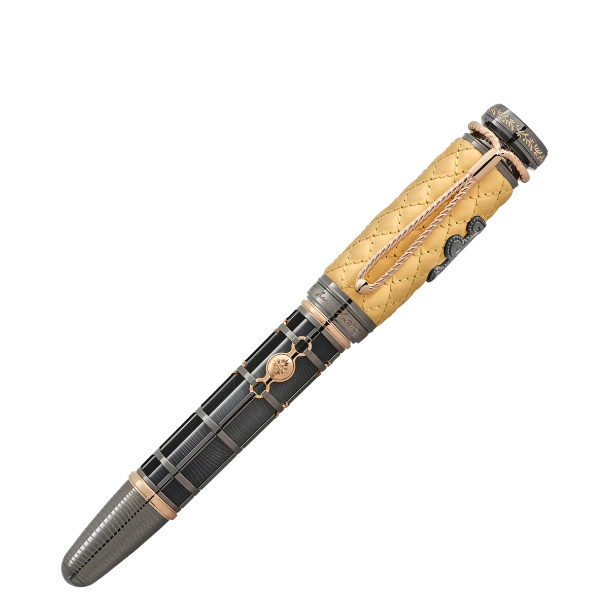 Peu d’auteurs dans l’histoire littéraire ont eu la capacité de créer des dialogues et de donner vie à des personnages avec autant d’élégance, d’ironie et de perspicacité que l’auteure britannique Jane Austen. Montblanc a créé la Writers Edition Homage to Jane Austen pour rendre hommage à l’une des auteures les plus célèbres de la littérature anglaise. L’expérience du voyage est un élément clé dans l’œuvre de Jane Austen, car les voyages et les excursions servent souvent de catalyseurs à la fois pour les rencontres romantiques et les tourments intérieurs dans ses récits. S’inspirant des calèches de l’époque, le revêtement squeletté en or massif 750 recouvert de ruthénium du corps du stylo ressemble à un harnais, tandis que le motif ondulé de la laque dégradée en dessous évoque la crinière flottante d’un cheval. Complétant le barillet, le capuchon est en cuir de vachette anglais jaune gaufré, inspiré de l’intérieur des élégantes voitures de voyage. Il est rehaussé d’une incrustation en or massif 750 recouverte de ruthénium, avec les initiales de Jane Austen telles qu’elles apparaissent sur l’écrin à lettres sculpté pour elle par son frère. En hommage au roman Orgueil et Préjugés, l’anneau du capuchon en or massif 750 recouvert de ruthénium est gravé des chiffres romains LVI. Ce nombre correspond au chapitre 56 d’Orgueil et Préjugés, dans lequel Lady Catherine de Bourgh se précipite en calèche chez Mlle Bennet pour « clarifier les choses » et étouffer tout espoir de mariage.Son style d’écriture s’est avéré populaire et les premières éditions de ses œuvres se sont rapidement vendues, mais personne en dehors de sa famille ne savait qu’elle en était l’auteure.La page de titre de son roman Sense and Sensibility, publié en 1811, indiquait simplement que l’œuvre avait été écrite « par une dame ». Cette mention de l’auteur orne le capuchon du Writers Edition Homage to Jane Austen Limited Edition 97, ainsi que l’emblème Montblanc en or massif 750. La silhouette de l’instrument d’écriture lui-même ressemble à un cachet de cire, similaire à celui que Jane Austen aurait utilisé. Le clip signature plaqué or de l’édition limitée Writers Edition Homage to Jane Austen 97 est tout aussi inhabituel que son capuchon. En forme de cordon tressé avec une fermeture à cordon, il ressemble à celui d’une pochette (réticule) utilisée pour transporter de la poudre, un miroir et l’indispensable mouchoir de poche. La seule silhouette connue de Jane Austen, qui montre ses traits délicats, est immortalisée sous la forme d’une gravure artistique sur la plume bicolore en or massif 750 fabriquée à la main. La partie avant en or massif 750 et les accessoires apportent la touche finale au design. Limité à seulement 97 exemplaires, en référence à l’année de publication originale de Pride and Prejudice, 1797.