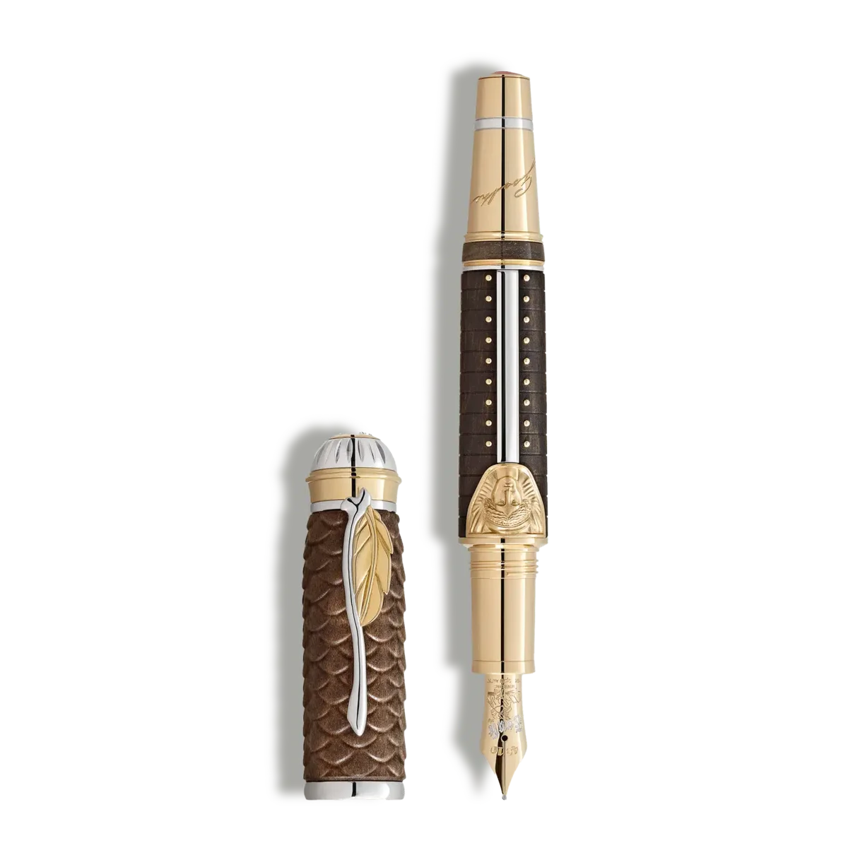 Au cœur de l’éveil intellectuel du XVIIIe siècle se trouvait un homme en particulier dont les écrits ont résisté à l’épreuve du temps : Johann Wolfgang von Goethe. Érudit, géant de la littérature allemande, avocat, ministre du gouvernement, directeur de théâtre, mais aussi collectionneur et naturaliste prodigieux, il était à tous égards un révolutionnaire, déterminé à repousser les limites de la perception et du savoir.La profondeur philosophique de Faust, la subtilité lyrique de sa poésie et l’étendue de ses explorations scientifiques derrière sa théorie des couleurs et ses traités botaniques ont eu une importance historique et témoignent, par leur diversité et leur influence considérable, du génie de Goethe. En tant que poète et homme d’État, conseiller, ami et amant, il a laissé une empreinte indélébile sur le monde qui l’entourait et reste aujourd’hui encore une source d’inspiration et de vision. Avec le soutien de la Klassik Stiftung Weimar et du Musée national Goethe qu’elle abrite, Montblanc consacre son édition Writers Edition Homage to Johann Wolfgang von Goethe Limited Edition 88 à ce génie universel, en mettant particulièrement l’accent sur Goethe le collectionneur. La silhouette historique de cette édition s’inspire de l’instrument d’écriture précieux de Goethe, avec lequel il a couché sur le papier toutes ses connaissances, ses idées et les fruits de son imagination poétique apparemment sans limites. L’écriture était sa raison de vivre. L’édition la plus complète de ses œuvres et écrits comprend actuellement 40 volumes, contenant à eux seuls environ 3 000 poèmes. Sa pièce Götz von Berlichingen a été publiée anonymement en 1773, mais un an plus tard, Les Souffrances du jeune Werther, écrite en moins de quatre semaines, a propulsé le jeune avocat de 25 ans vers une renommée immédiate. Sa réputation n’est pas passée inaperçue à Weimar, où il n’était plus seulement considéré comme un poète et philosophe de renom, mais aussi comme un homme d’État et un réformateur de l’économie et des finances. Mais Goethe était réticent à faire des compromis lorsqu’il s’agissait d’équilibrer ses rôles de poète et d’homme politique. Insatisfait en raison d’un sentiment de stagnation créative, il décida d’entreprendre un voyage en Italie en 1786, incognito. C’est là qu’il ressentit une nouvelle liberté spirituelle, différente de tout ce qu’il avait connu dans son pays natal. Il découvrit les trésors antiques de Rome et des phénomènes naturels dont il ignorait l’existence. Au cours de son voyage de 18 mois, qu’il décrivit plus tard dans son Voyage en Italie, Goethe gravit plusieurs fois le Vésuve, volcan toujours en activité, et collectionna une multitude d’objets pour ses études sur la nature, notamment une pomme de pin qu’il conserva à la fois comme une merveille de la nature et comme un souvenir de l’ancienne pomme de pin en bronze de quatre mètres de haut exposée au Vatican. S’inspirant de l’esthétique du modèle naturel, le capuchon semble recouvert d’un arrangement d’« écailles » en bois de noyer. Le corps est fabriqué à partir du même bois exquis afin de ressembler aux armoires spéciales que Goethe avait fait fabriquer pour abriter sa collection de plus de 55 000 trésors artistiques et spécimens naturels accumulés au cours de ses voyages. Parmi ses souvenirs figurait également son « premier amour à Rome », un buste colossal de la déesse Junon. Ses traits, moulés en miniature dans de l’or massif et flanqués des ailes d’une statue de Victoria provenant de sa collection d’art personnelle, constituent la pièce maîtresse de cet instrument d’écriture. Le cône est orné de la signature de Goethe ainsi que d’une incrustation de pierre de lave, très populaire en Italie à l’époque. Le séjour de Goethe dans le pays fut extrêmement enrichissant, et l’année de son retour, 1788, a inspiré Montblanc à limiter cette édition Writers Edition à exactement 88 pièces. Au cours de ses voyages en Italie, Goethe redécouvrit sa veine créative et travailla sur les drames Iphigénie en Tauride, Egmont et Torquato Tasso, mais ses études de la nature et ses recherches scientifiques allaient occuper de plus en plus son temps. À un âge avancé, il considérait même ses réalisations scientifiques comme plus précieuses que ses réalisations poétiques. Sa passion pour la connaissance l’a conduit à étudier l’optique et l’anatomie, la biologie et la géologie. L’agrafe en forme de feuille rend hommage à ses études extraordinaires dans le domaine de la morphologie et plus particulièrement à sa proposition d’une forme végétale archétypale, une idée qu’il a même transposée en vers dans son poème d’amour didactique La Métamorphose des plantes. Sa Théorie des couleurs est toutefois considérée comme son étude scientifique la plus remarquable, ouvrant une perspective entièrement nouvelle sur l’essence de la couleur. Goethe aimait illustrer ses découvertes sur les effets de la couleur à l’aide d’un ensemble de verres à boire qu’il avait commandés à Carlsbad. Ceux-ci étaient spécialement taillés de manière à changer de teinte en fonction de l’incidence de la lumière. S’inspirant de cette idée, Montblanc rend hommage à Goethe en tant que scientifique et philosophe en couronnant le capuchon d’un dôme en cristal. Celui-ci est orné de l’emblème Montblanc, entouré de motifs tirés des verres de Carlsbad de Goethe et de sa sculpture Juno. En 1808, Goethe acheva enfin une œuvre qui est l’une des pièces de théâtre les plus traduites et les plus jouées au monde : Faust. Une tragédie. Goethe a consacré presque toute sa vie au personnage de Faust. Goethe lui-même a fait l’éloge d’une série de lithographies du peintre Eugène Delacroix, commandé