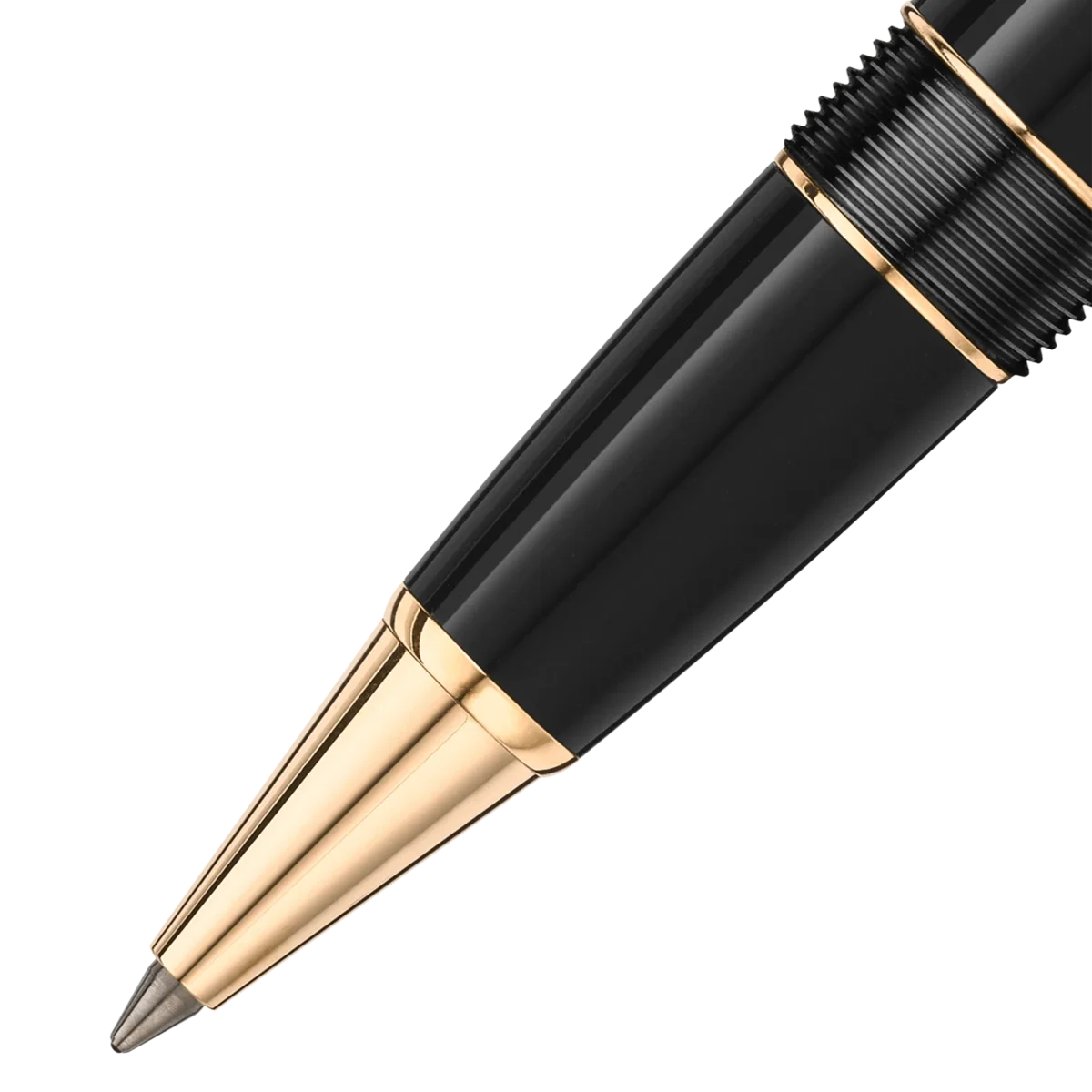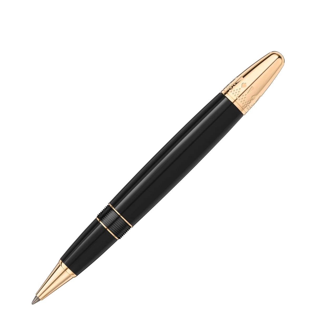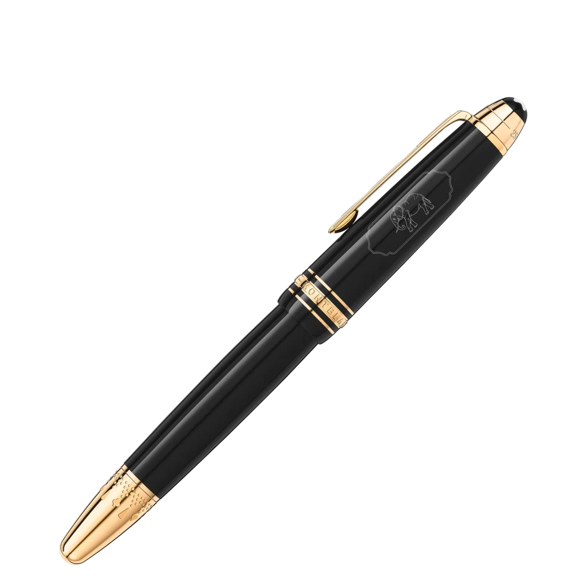 La collection Meisterstück Around the World in 80 Days s’inspire du célèbre roman d’aventures de Jules Verne. Le stylo roller LeGrand en résine précieuse anthracite s’inspire de la deuxième étape du voyage, de Bombay à Yokohama. Dans cette partie de l’aventure, les personnages principaux voyagent à dos d’un éléphant majestueux, représenté dans un cartouche sur le capuchon. Le clip est orné d’un motif de cartes à jouer en diamant laqué rouge et le cône est gravé d’un motif inspiré des bijoux de la princesse Aouda et des cartes à jouer, représentant le pari de M. Fogg de faire le voyage en 80 jours. Le sommet du capuchon est gravé de la durée du voyage, 25 jours de Bombay à Yokohama et 80 jours au total.