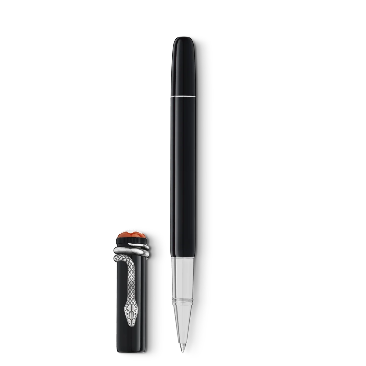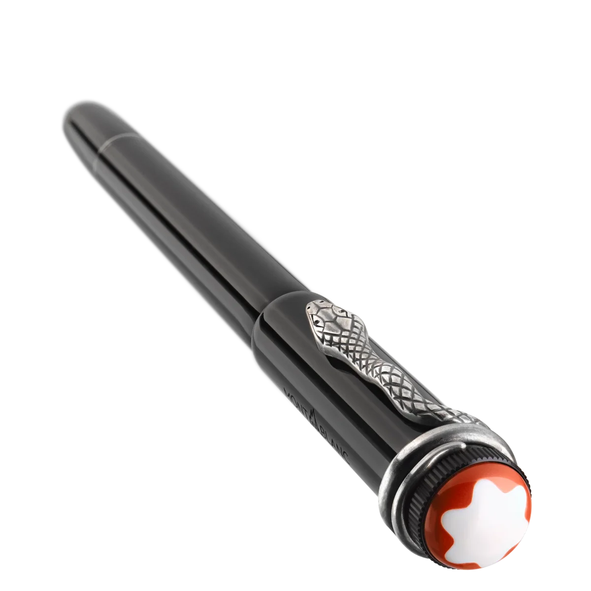 Lorsqu’il a été développé en 1906, le stylo plume « Rouge et Noir » était considéré comme une prouesse technique exceptionnelle, garantissant un fonctionnement simple sans avoir à tremper la plume dans un encrier. La collection Heritage Rouge et Noir célèbre l’esprit pionnier de Montblanc, vieux de 110 ans. Réinterprétant cet instrument d’écriture légendaire, elle se caractérise par une silhouette plus longue et plus fine et un savoir-faire raffiné au fil des générations. Clip serpent au look vintage avec garnitures assorties. Le clip est fabriqué à partir d’un alliage métallique spécial, selon un procédé d’estampage et d’enroulement, puis vieilli grâce à un procédé galvanique et de décapage unique. Numéro d’identification : MB132109 Poids physique : 155 g Dimensions : 136 mm * 16 mm