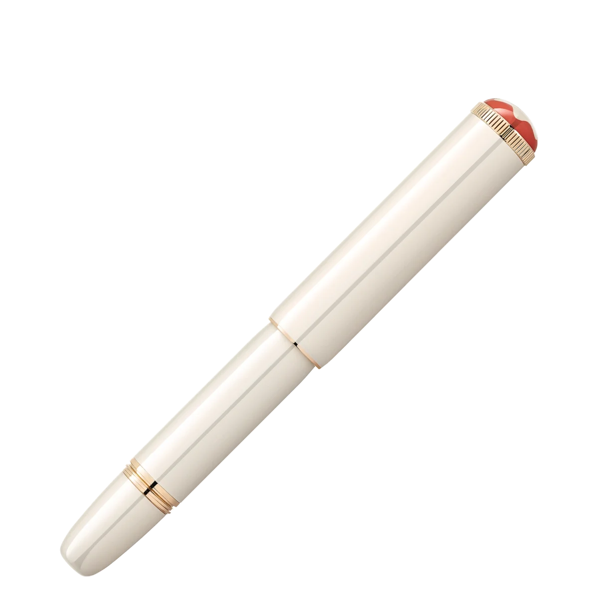 La collection Montblanc Heritage Rouge et Noir « Baby » célèbre l’esprit pionnier et le riche héritage de la maison Montblanc. Inspirée des stylos Montblanc « Baby » originaux des années 1920, Montblanc réinterprète ce design alors inattendu et lui apporte une touche de modernité. Le nom « Baby » décrit de manière ludique sa petite taille par rapport aux autres instruments d’écriture Montblanc. Créé en laque précieuse couleur ivoire et doté d’attributs emblématiques plaqués or, il est couronné d’un emblème Montblanc en résine précieuse entouré de la teinte corail de la collection Montblanc Rouge et Noir. Avec son revêtement en or et/ou son placage en or, Montblanc décrit la teinte lumineuse de l’or jaune qui est devenue une nuance appréciée pour les instruments d’écriture de la Maison.