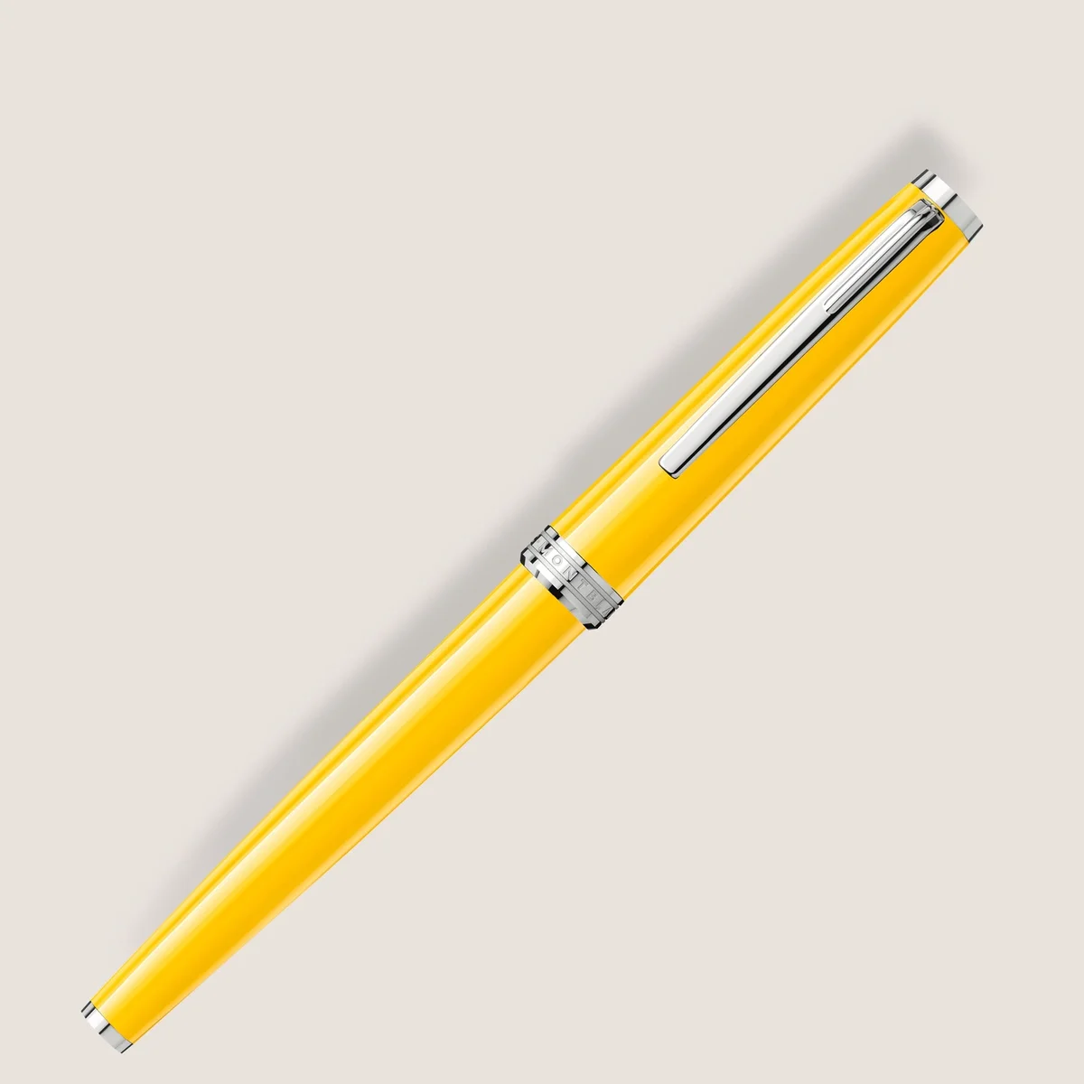 La collection Montblanc PIX s’inspire d’une élégance sobre et épurée, avec une touche de fantaisie dans les couleurs. Ce roller de luxe est fabriqué en résine précieuse polie et doté d’attributs plaqués platine. Le capuchon est orné de l’emblématique emblème blanc Montblanc.