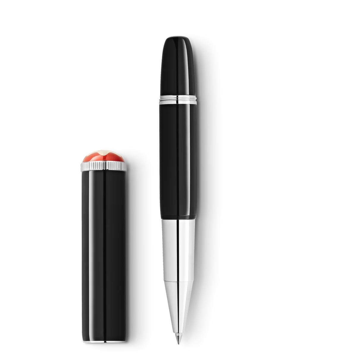 La collection Montblanc Heritage Rouge et Noir « Baby » célèbre l’esprit pionnier et le riche héritage de la maison Montblanc. Inspirée des stylos Montblanc « Baby » originaux des années 1920, Montblanc réinterprète le design alors inattendu et lui donne une touche moderne. Le nom « Baby » décrit de manière ludique sa petite taille par rapport aux autres instruments d’écriture Montblanc. Créé en laque précieuse noire et doté d’attributs plaqués platine, il est couronné d’un emblème Montblanc en résine précieuse entouré de la teinte corail emblématique de la collection Montblanc Rouge et Noir.