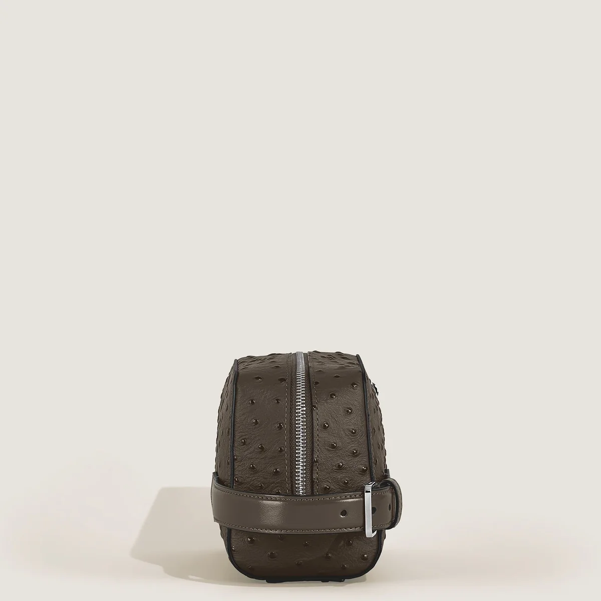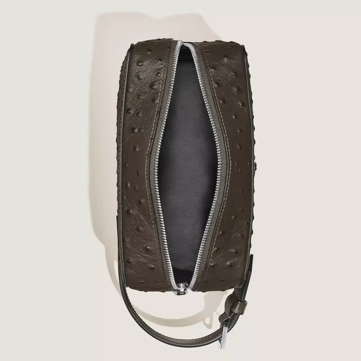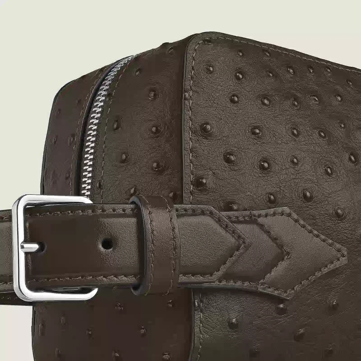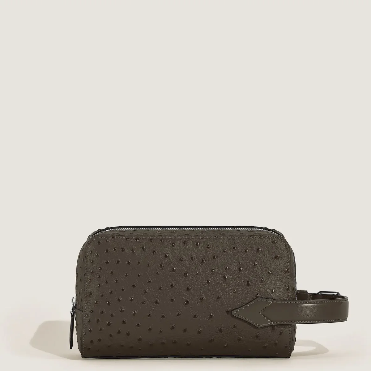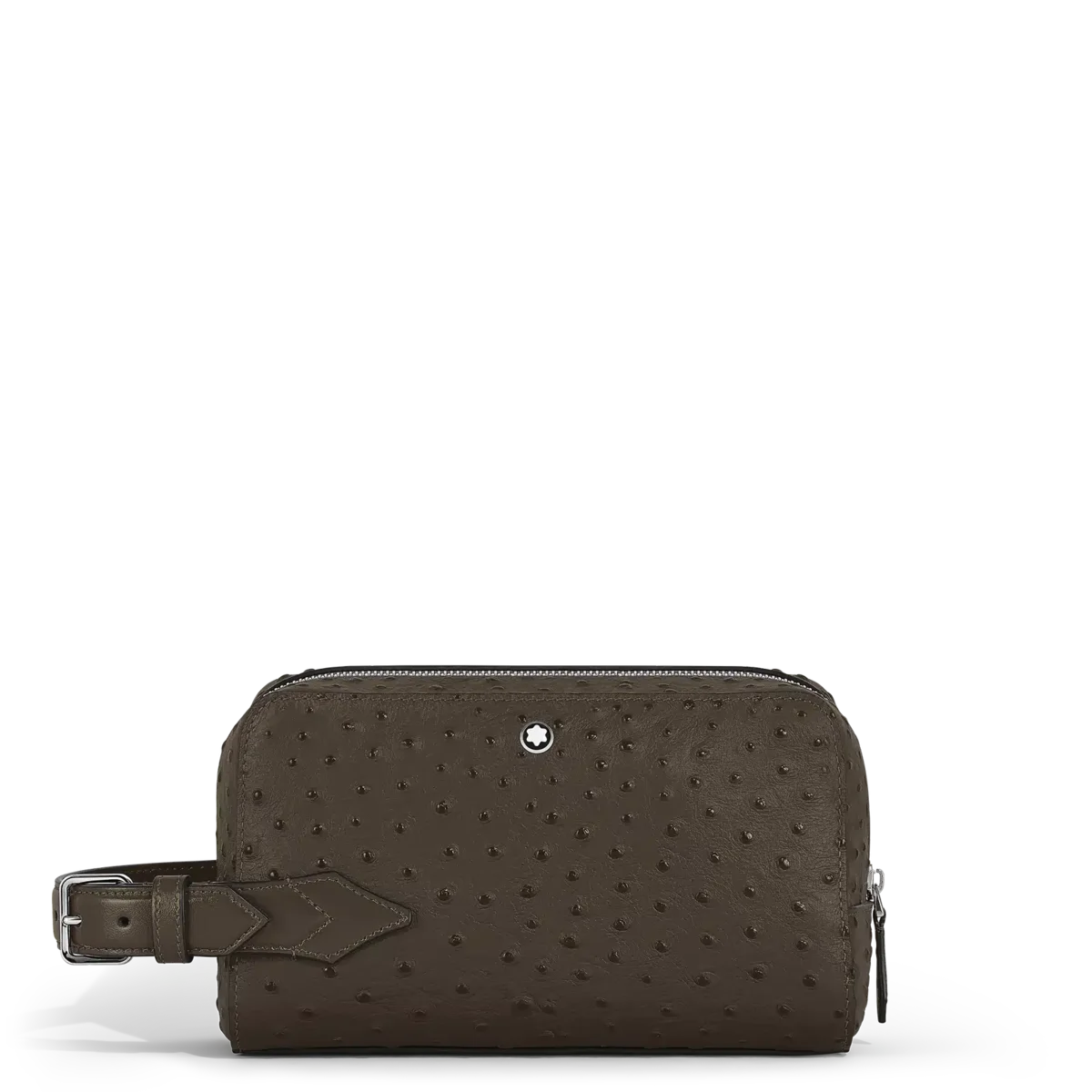 Avec l’art de l’écriture au cœur de sa conception, la nouvelle pochette est confectionnée en cuir élégant gaufré autruche kaki. Les détails des coins apportent une touche distinctive et raffinée à son design. De taille idéale pour les essentiels du quotidien, elle dispose d’un compartiment principal avec une poche ouverte et d’une dragonne amovible, alliant élégance et fonctionnalité polyvalente.