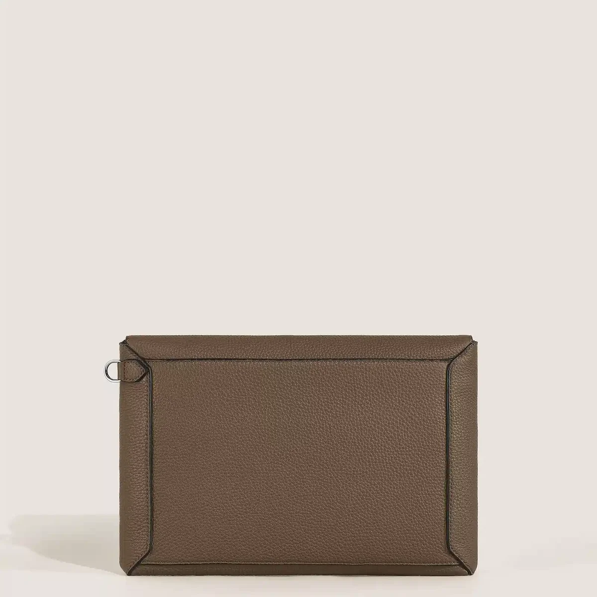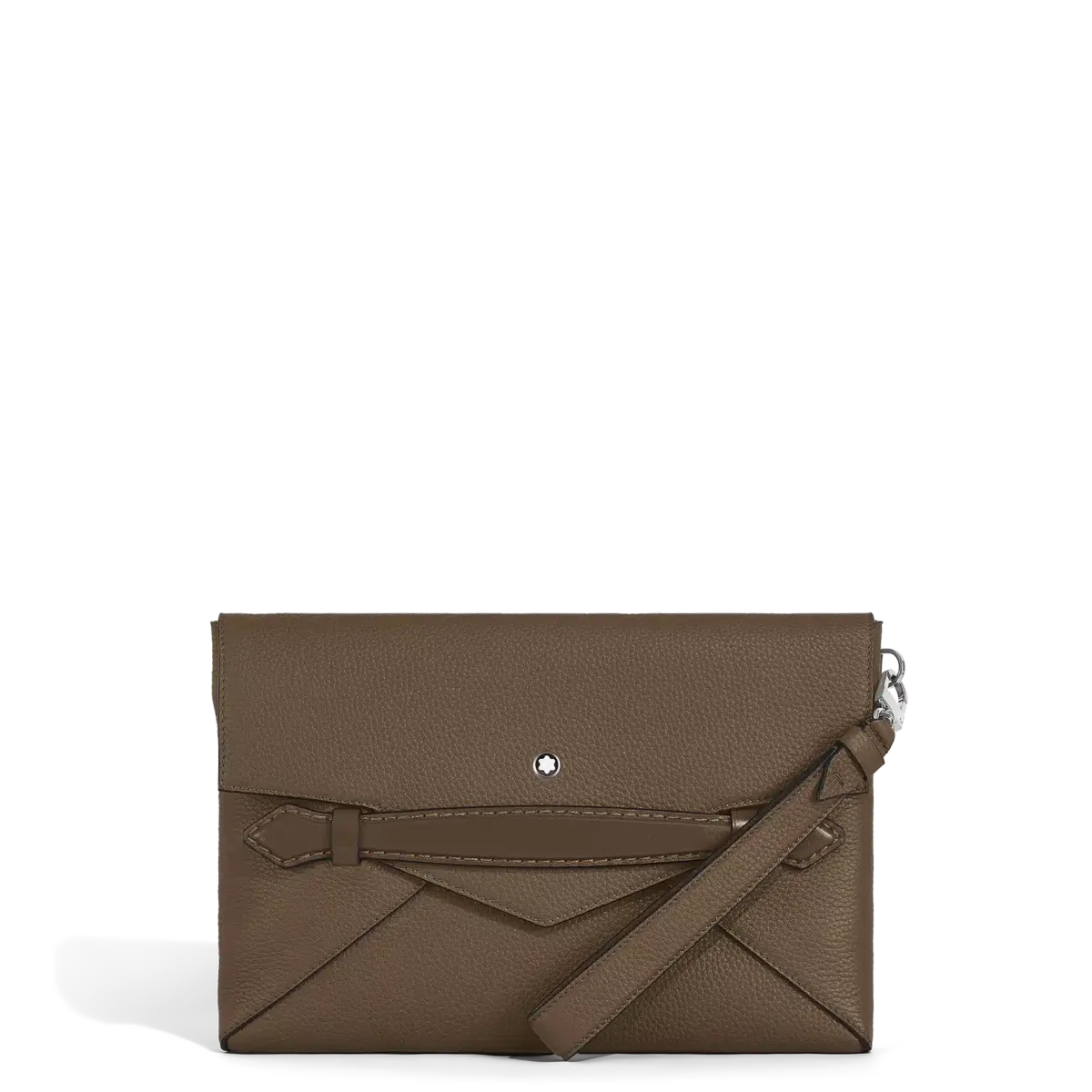 La pochette allie l’écriture Montblanc à une fonctionnalité raffinée. Son design inspiré d’une enveloppe est réalisé en cuir grainé noir souple couleur noisette, avec des coutures sellier qui rappellent le tracé d’un stylo sur une ligne pointillée. La poignée avant unique en forme de plume permet de tenir confortablement la pochette d’une seule main, tandis qu’une poignée amovible pour le poignet ajoute à sa polyvalence. À l’intérieur, elle comprend un compartiment principal, une poche ouverte et deux boucles pour instruments d’écriture, complétées par une poche arrière pour plus de praticité.