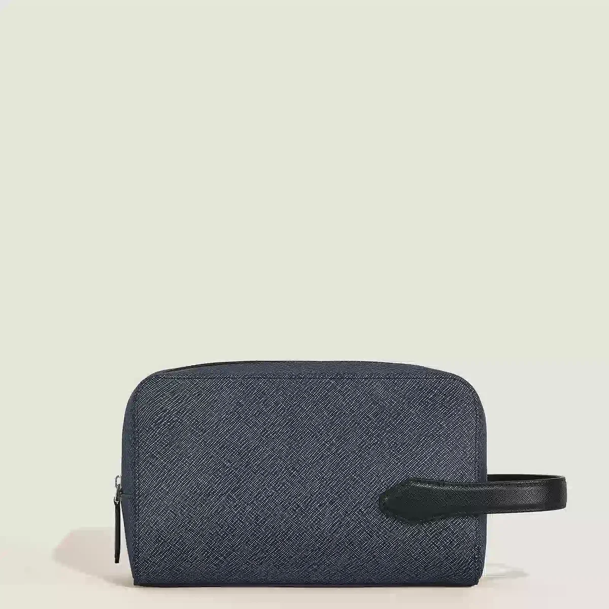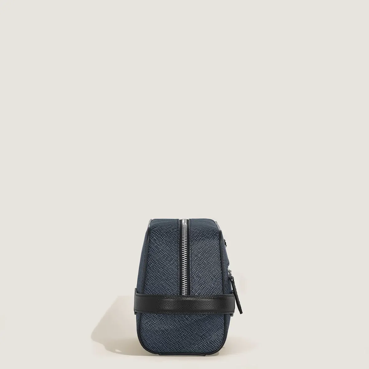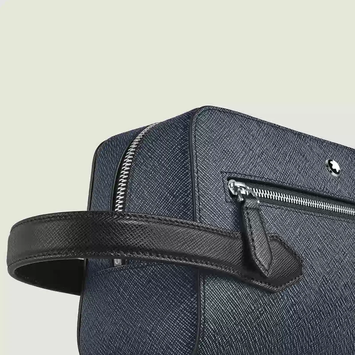Que ce soit pour vos voyages d’affaires ou vos vacances, cette pochette est un accessoire de voyage indispensable. Confectionnée en cuir Sartorial gaufré dans une combinaison raffinée de deux tons, bleu et noir, elle dispose d’un intérieur spacieux et d’une poche extérieure zippée pour vos essentiels. Les poignées en cuir vous permettent de la porter à la main ou de la glisser dans un sac de voyage.