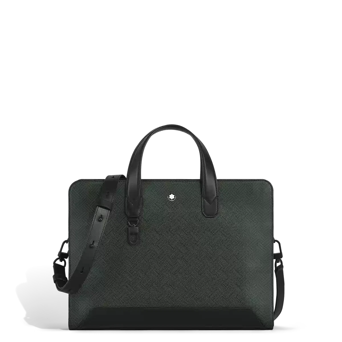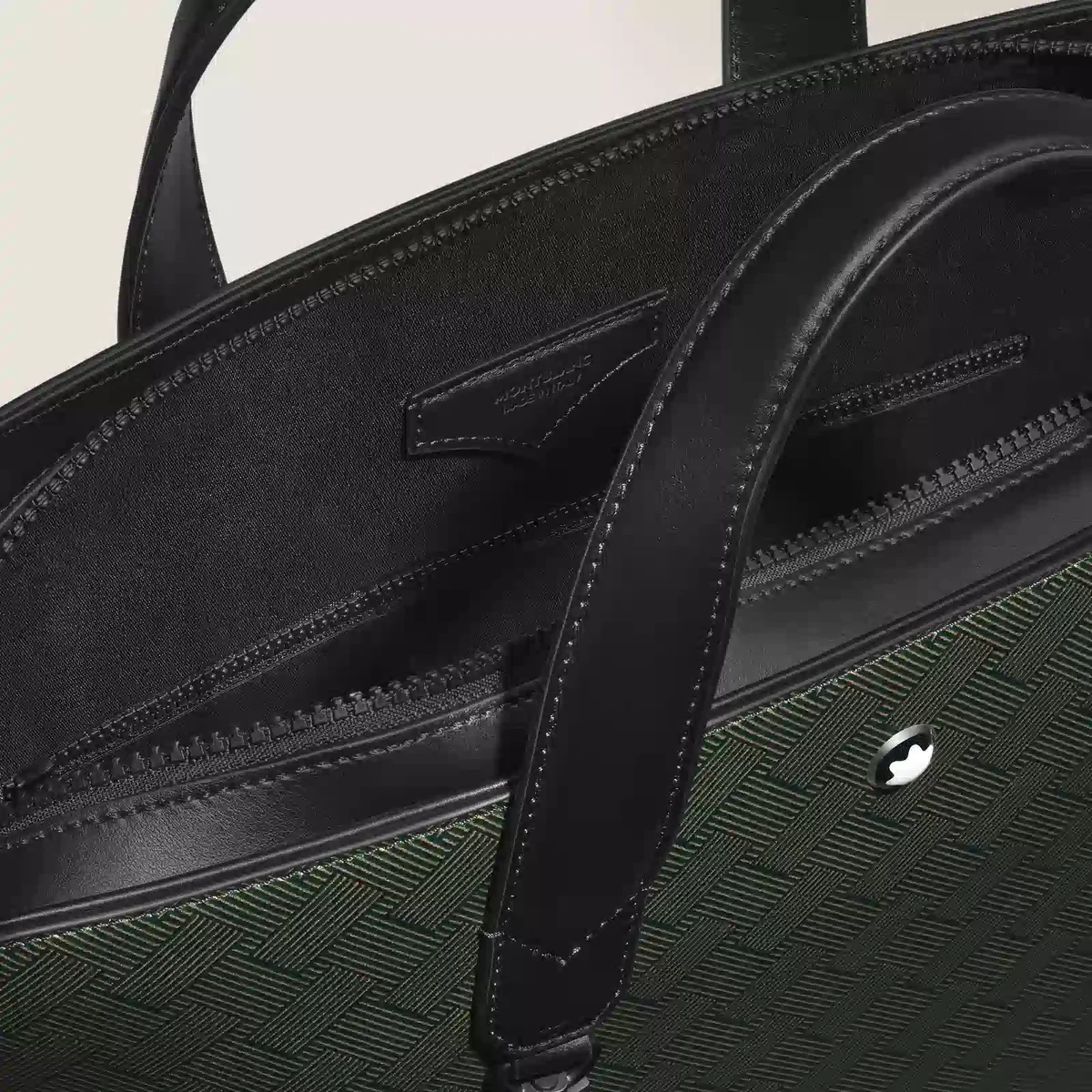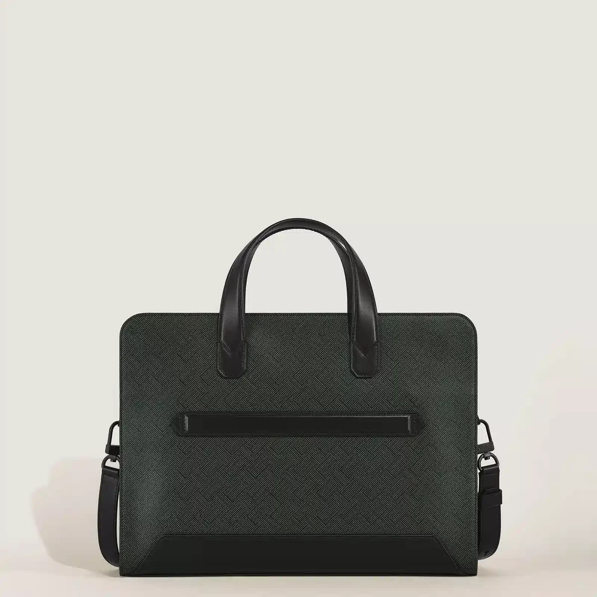 Conçue pour les professionnels urbains modernes, cette fine mallette à documents allie à la perfection fonctionnalité et style raffiné. Confectionnée en cuir et imprimée de notre motif Extreme 3.0 distinctif en multikaki, une élégante combinaison de noir, noisette et malachite, elle présente un design unique rehaussé par des finitions métalliques noires élégantes. Idéale pour un usage quotidien et les réunions professionnelles, elle offre un espace intérieur suffisant pour les documents au format A4, les stylos et autres accessoires indispensables, avec une poche zippée et deux boucles pour stylos qui garantissent une organisation parfaite.