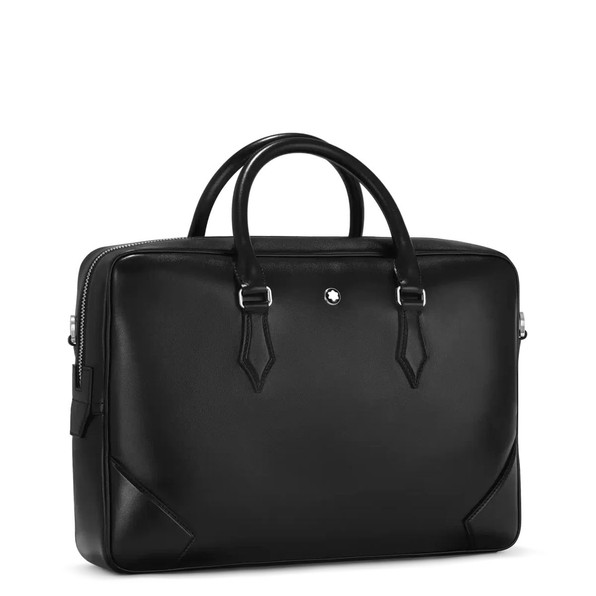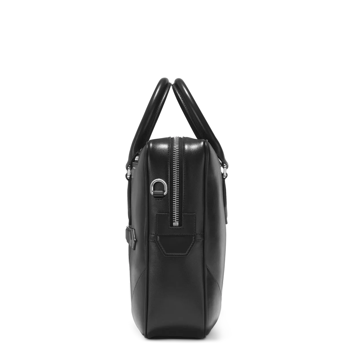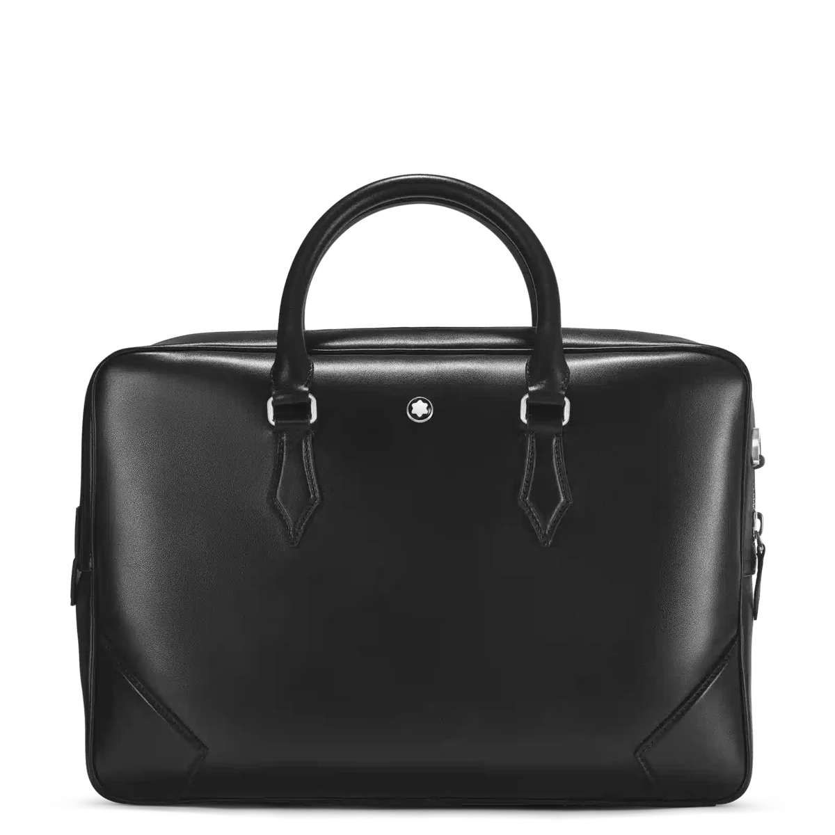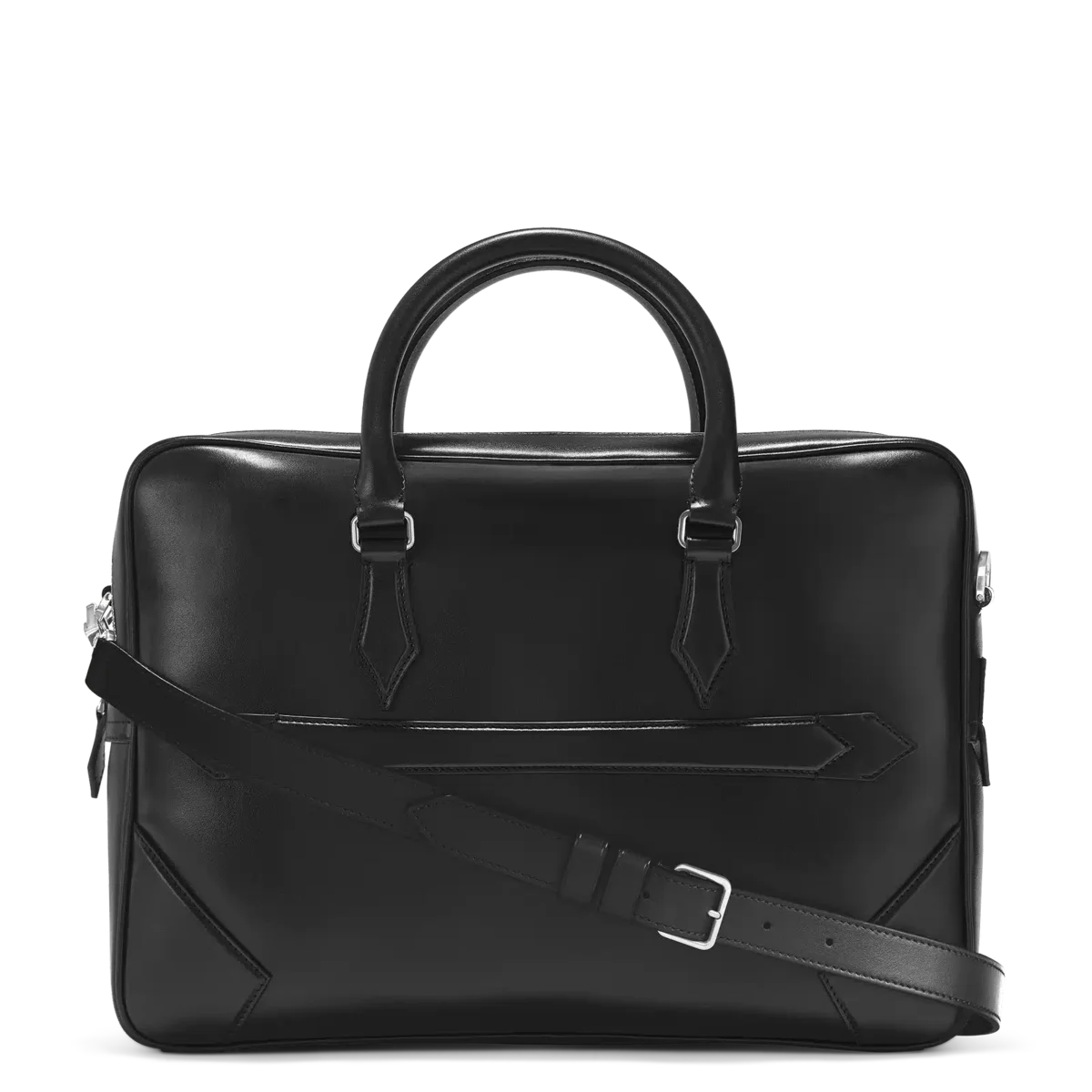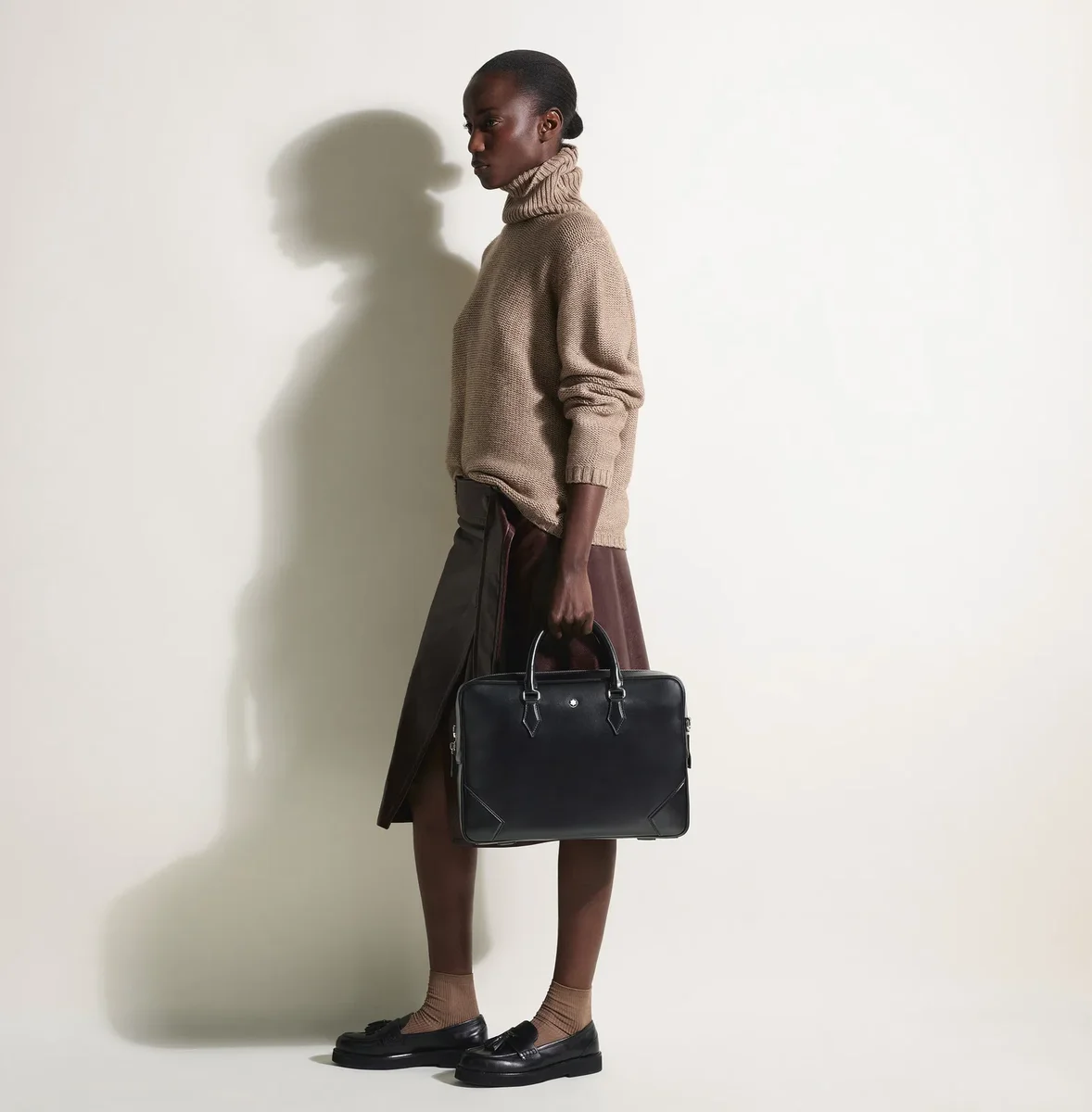 Inspirée par la culture de l’écriture, la mallette Meisterstück est un compagnon élégant pour les voyages d’affaires. Confectionnée dans un nouveau cuir noir brillant, tous ses détails rappellent la plume : les coutures, les tirettes de fermeture éclair et les poignées rappellent la forme de la plume, l’essence même de Montblanc. Une version agrandie du logo illumine le sac. Les poignées supérieures en cuir, la bandoulière amovible en cuir et le système satellite offrent de multiples options de transport, tandis que les poches intérieures garantissent un aspect pratique. Numéro d’identification MB129664 Dimensions 375 mm * 80 mm * 270 mm