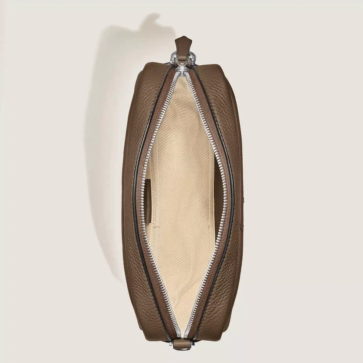 Confectionné en cuir de veau grainé noisette souple, ce petit sac à bandoulière présente une silhouette rectangulaire rehaussée de détails en cuir Meisterstück, notamment une tirette de fermeture éclair audacieuse en forme de plume et des coutures sellier raffinées qui rappellent les traces d’un stylo. Conçu pour être pratique, il offre un compartiment principal avec une poche ouverte et deux boucles pour stylos, tandis qu’une bandoulière amovible et réglable offre des options de transport polyvalentes avec un style sans effort. Numéro d’identification MB220209 Dimensions 250 mm * 70 mm * 190 mm