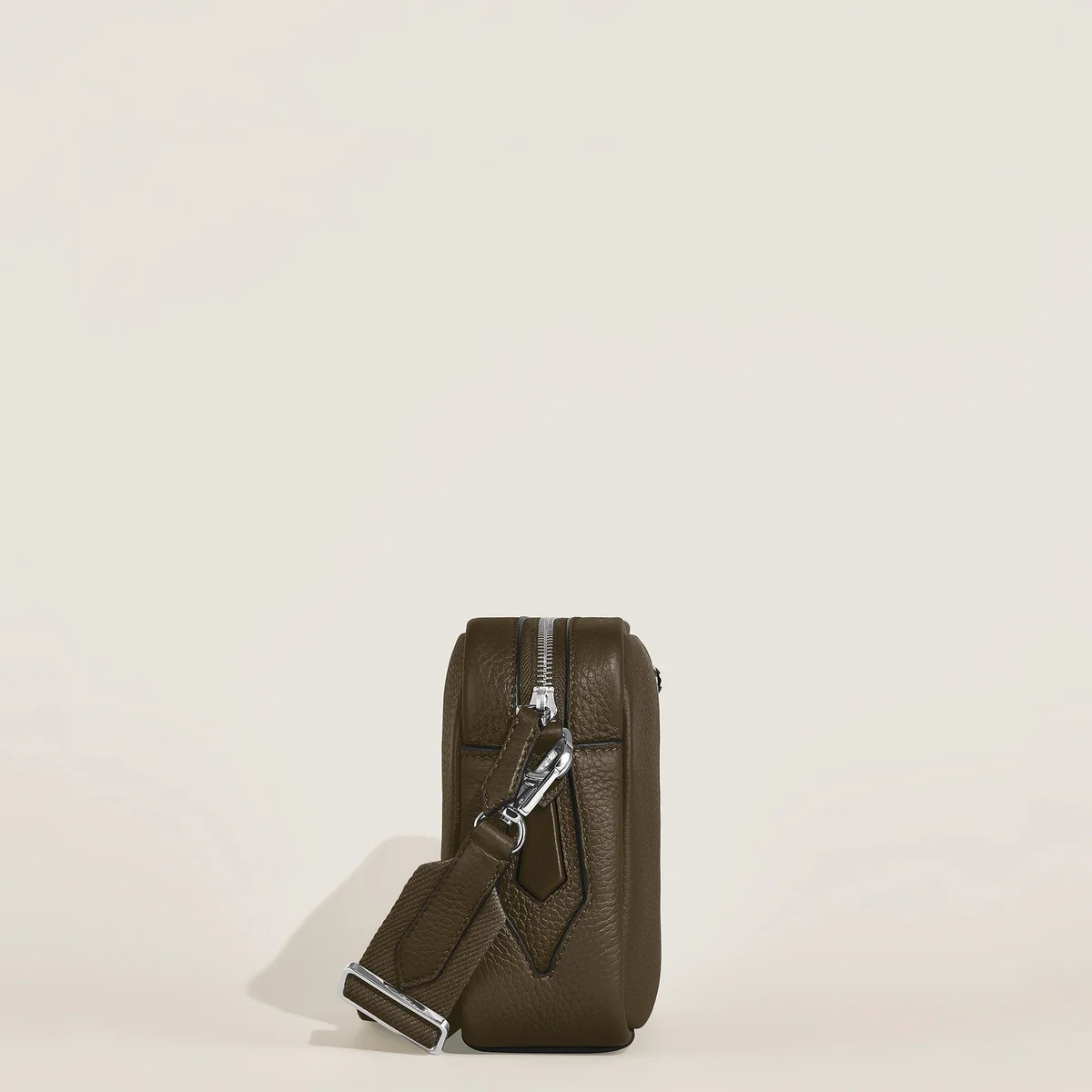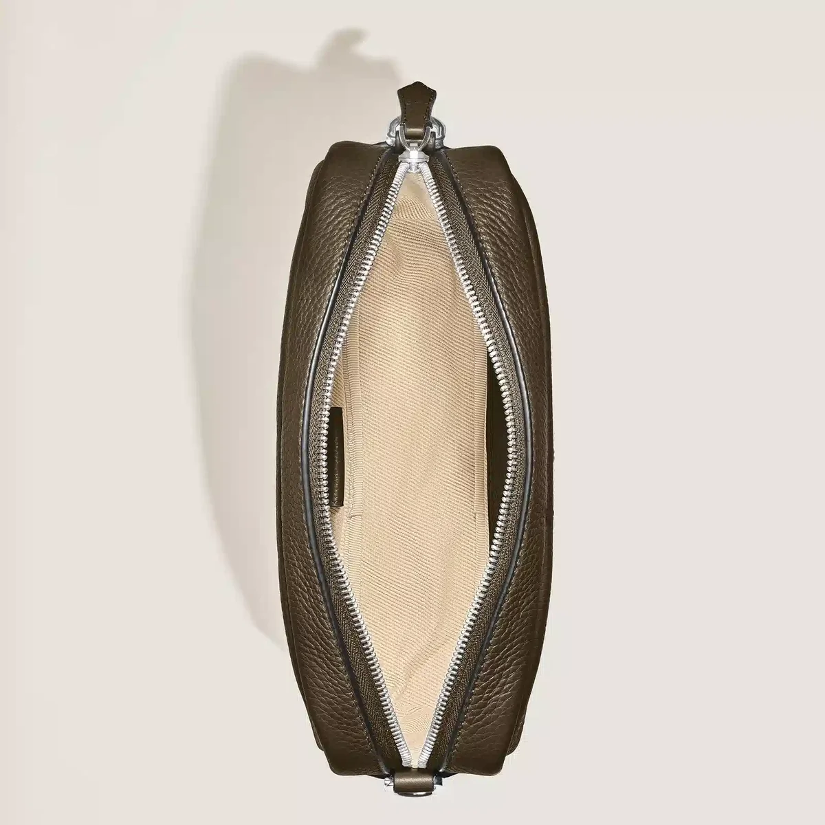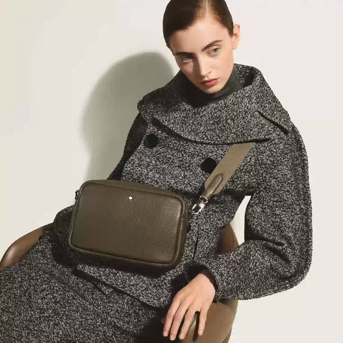 Confectionné en cuir de veau grainé kaki souple, ce petit sac à bandoulière présente une silhouette rectangulaire rehaussée de détails en cuir Meisterstück, notamment une tirette de fermeture éclair audacieuse en forme de plume et des coutures sellier raffinées qui rappellent les traces d’un stylo. Conçu pour être pratique, il offre un compartiment principal avec une poche ouverte et deux boucles pour stylos, tandis qu’une bandoulière amovible et réglable offre des options de transport polyvalentes avec un style sans effort.