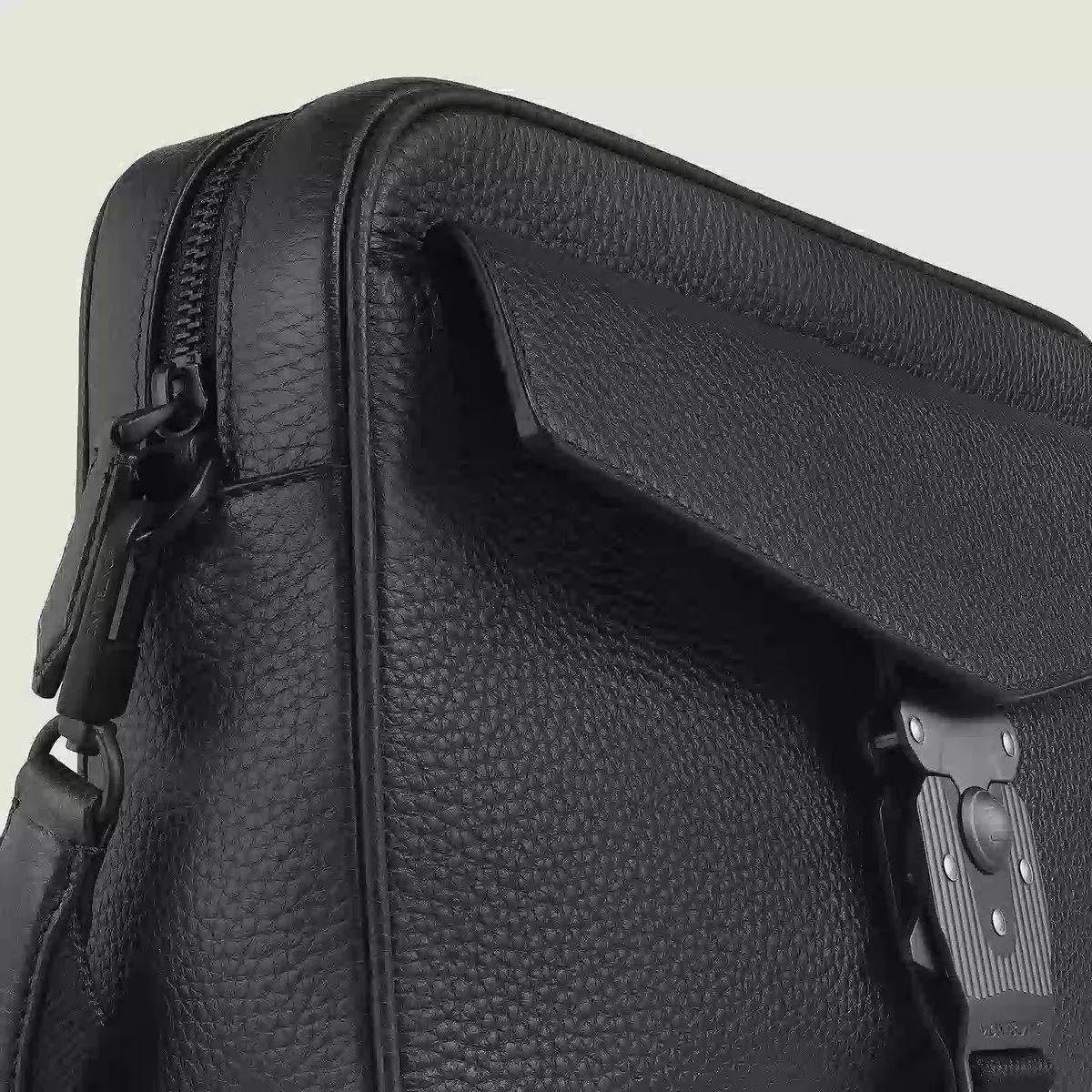 Découvrez l’élégante sacoche Messenger, confectionnée en cuir grainé noir texturé et souple, et dotée d’une fermeture sécurisée M LOCK 4810 à l’avant. Elle comprend un compartiment principal spacieux, une poche avant facilement accessible sous le rabat et une poche intérieure ouverte pour organiser vos affaires. Pour une touche personnelle, le fermoir avant peut être personnalisé afin de rendre ce sac unique. La bandoulière réglable et amovible assure un transport confortable et polyvalent avec un style sans effort.