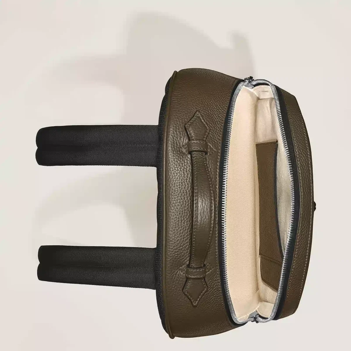 Ce luxueux sac à dos en cuir kaki est un compagnon sophistiqué pour les trajets quotidiens ou les courts voyages d’affaires. Confectionné dans un cuir grainé et aux formes souples, il présente également des détails emblématiques, notamment des fermetures éclair en forme de plume et des coutures raffinées. Ses options de transport polyvalentes comprennent des bretelles réglables et un système satellite permettant de le fixer facilement à des bagages plus volumineux. Le compartiment principal spacieux est conçu pour une organisation optimale. Il comprend un compartiment rembourré pour les ordinateurs portables jusqu’à 13 pouces, une poche ouverte et un passant pour stylos afin de garder les petits objets essentiels à portée de main.