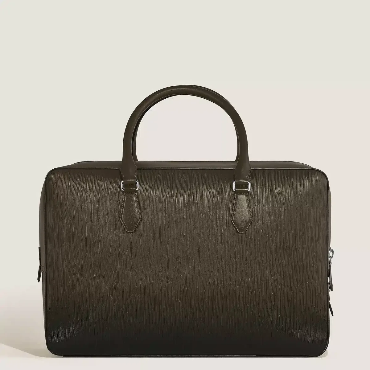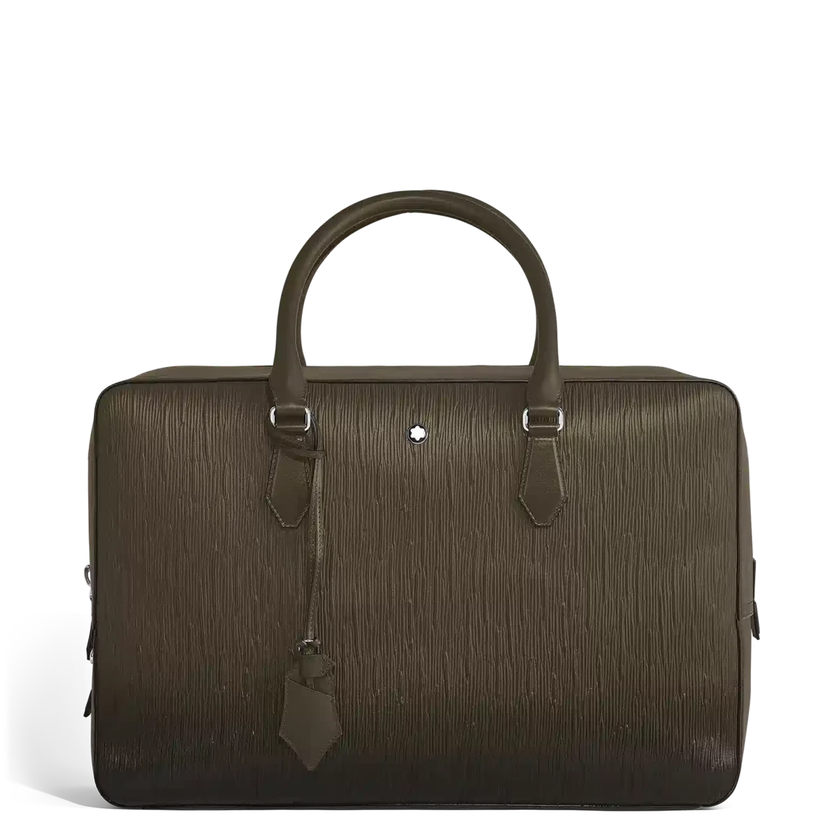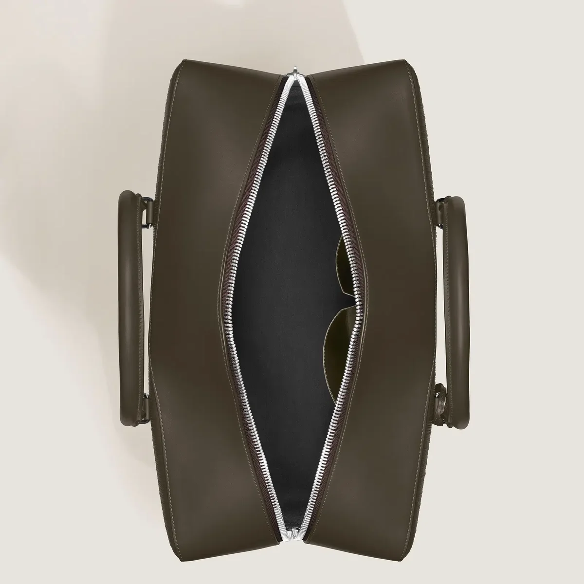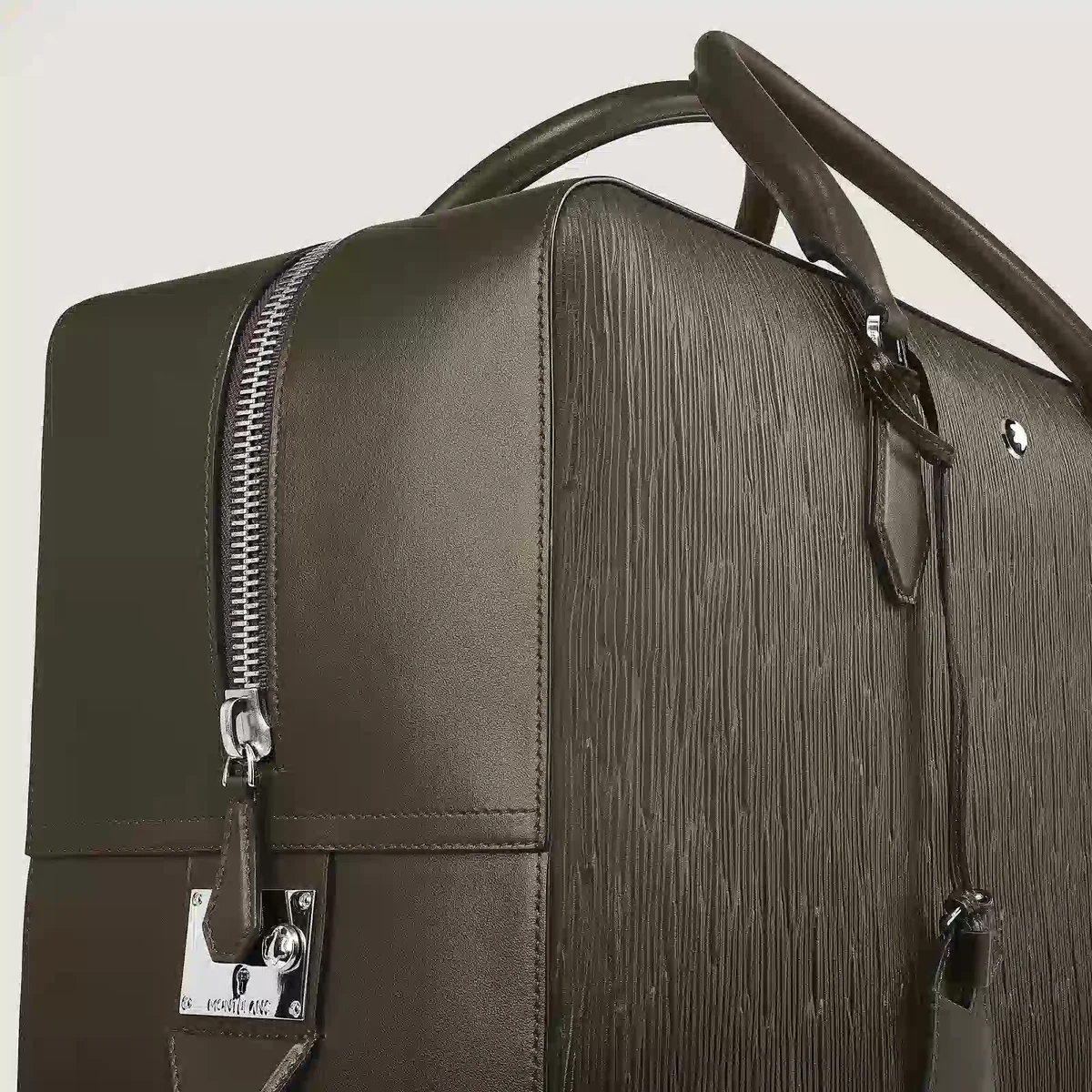 Issu de la gamme Ink, ce sac en cuir Montblanc 149 est confectionné en cuir Corteccia kaki. Inspiré par la texture de l’écorce des arbres, le cuir est soumis à un processus minutieux de gaufrage afin de créer le motif écorce, suivi d’un effet sfumato appliqué à la main, obtenant ainsi un riche dégradé qui rehausse son élégance naturelle. Conçu pour les courts séjours et les escapades du week-end, le sac offre un intérieur spacieux et une fermeture sécurisée à clé pour une tranquillité d’esprit. Les détails caractéristiques des coins, inspirés de la silhouette d’un flacon d’encre, rendent hommage à l’héritage de Montblanc en matière d’écriture, faisant de ce sac un compagnon de voyage raffiné et fonctionnel. Numéro d’identification : MB220268 Dimensions : 455 mm * 195 mm * 295 mm