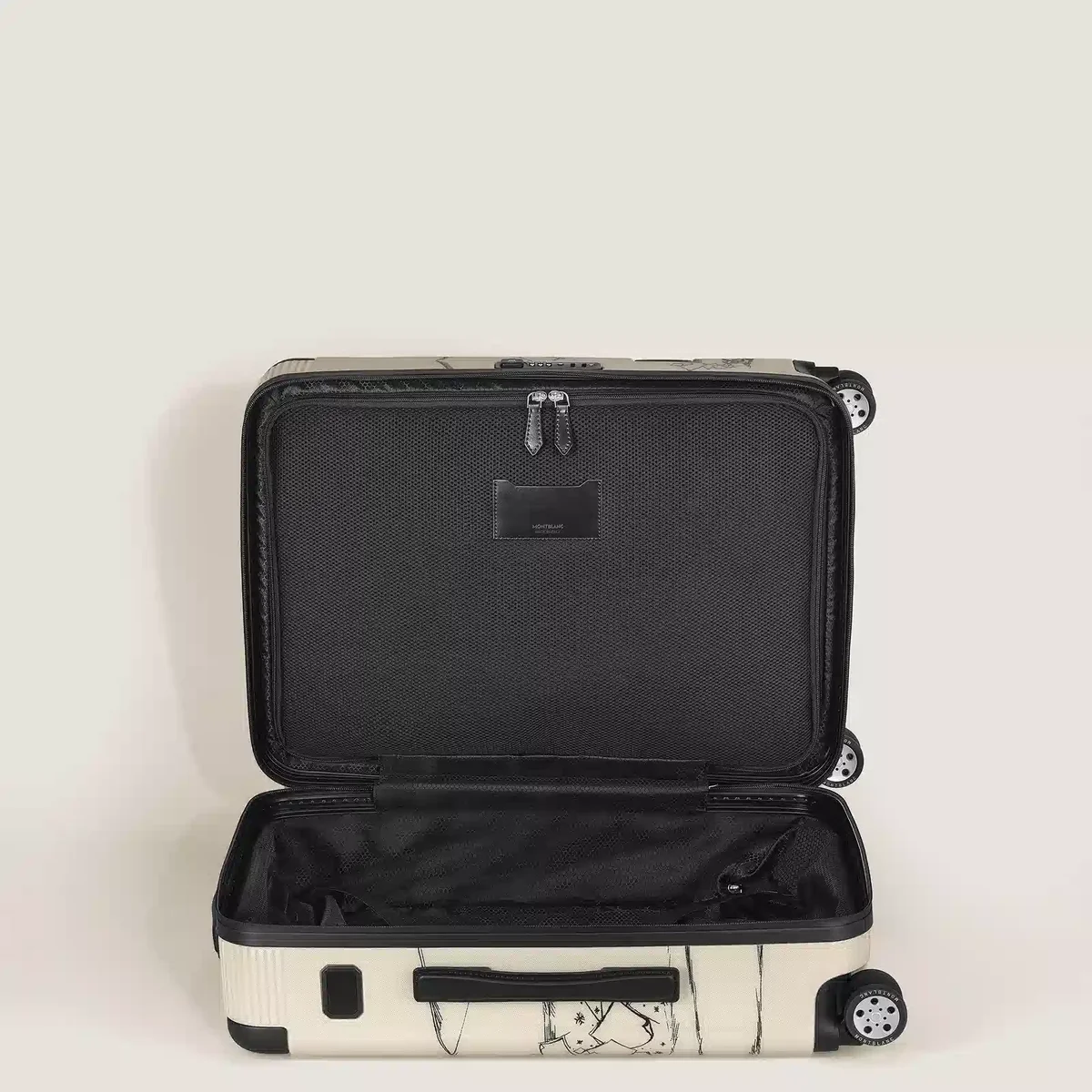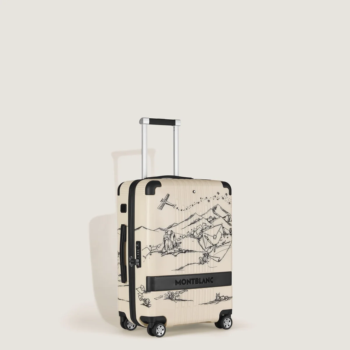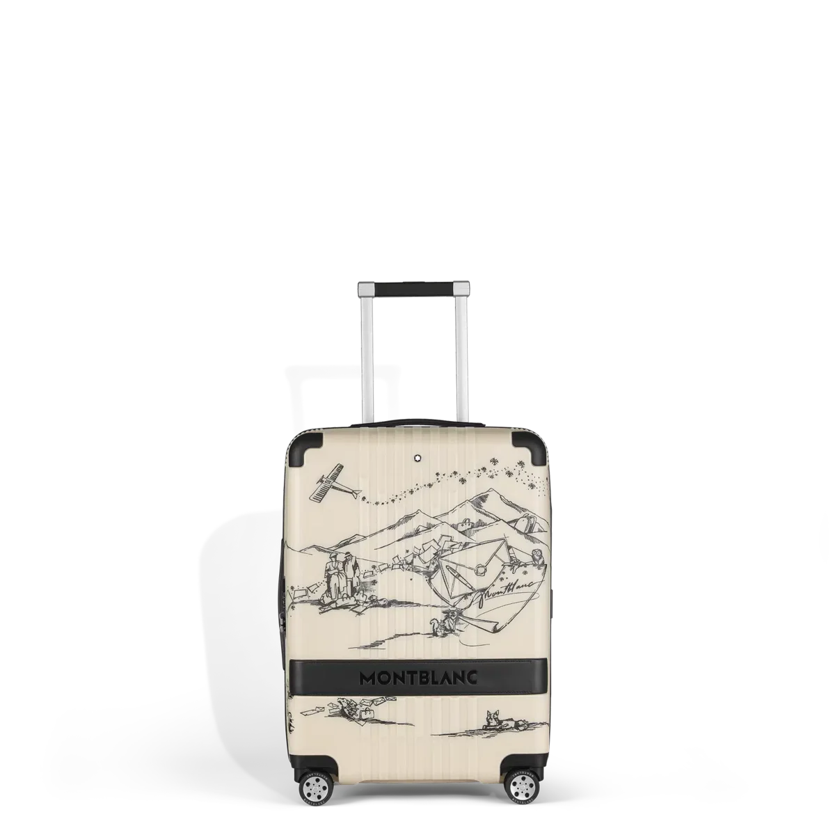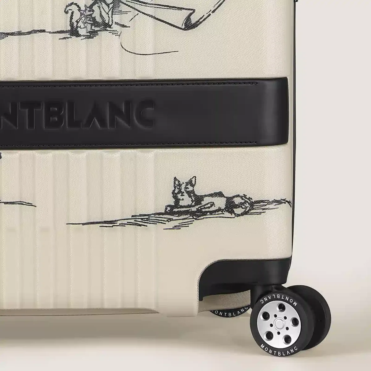 Notre valise à roulettes Happy Holidays est un compagnon de voyage élégant pour le voyageur moderne. Fabriquée en polycarbonate haute performance avec des détails en cuir noir, cette valise à roulettes allie durabilité et style sophistiqué. Ornée d’une scène hivernale au Mont Blanc, une technique de sérigraphie représente le voyage de l’écriture à travers des papiers et des enveloppes tourbillonnants, le Meisterstück, des sacs de voyage et bien plus encore. L’intérieur comprend deux compartiments principaux pour un rangement organisé, avec des bandes élastiques d’un côté et un filet noir de l’autre. Avec ses dimensions de 38 x 55 x 23 cm, elle répond souvent aux critères des bagages à main. Les restrictions relatives aux bagages à main et aux bagages cabine pouvant varier d’une compagnie aérienne à l’autre, il est recommandé de vérifier les réglementations spécifiques de votre compagnie aérienne avant votre voyage.